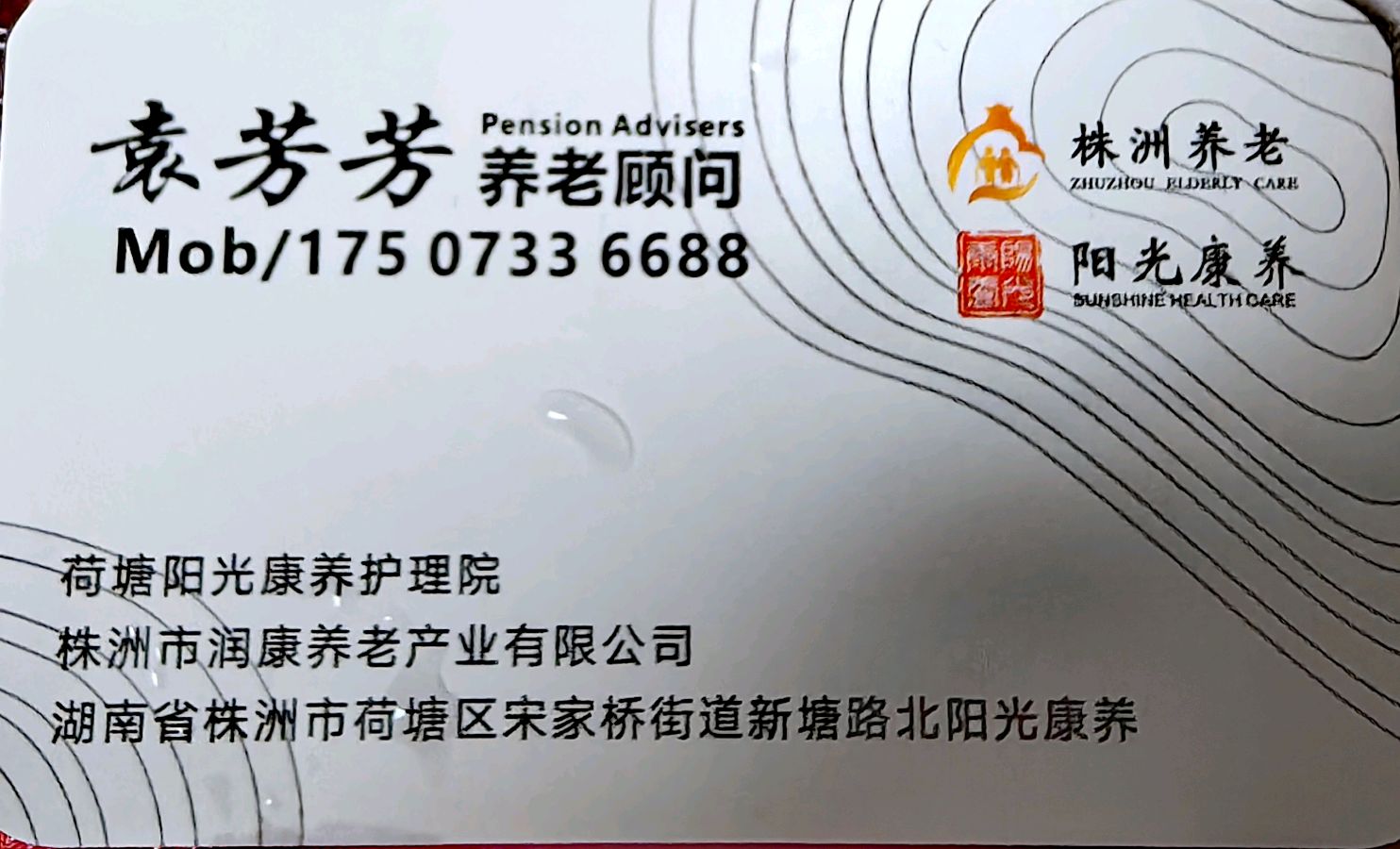 为尽社会义务,为志愿军老战土、离休干部.93岁的蔡远清老人和老伴、86岁的蒋女士能找到一家理想的康养机构,经优秀志愿者、优秀共产党员谢耀成同志多方打听,并通过电话,联系到了这家机构的袁芳芳同志,她十分热情有爱心,立即租上小车来株洲河西中信大楼,接蒋女土和我们陪同参观了阳光康养医养中心,给我们的印象非常好,不愧是一家专业化、人性化、粗细化服务的康养中心。