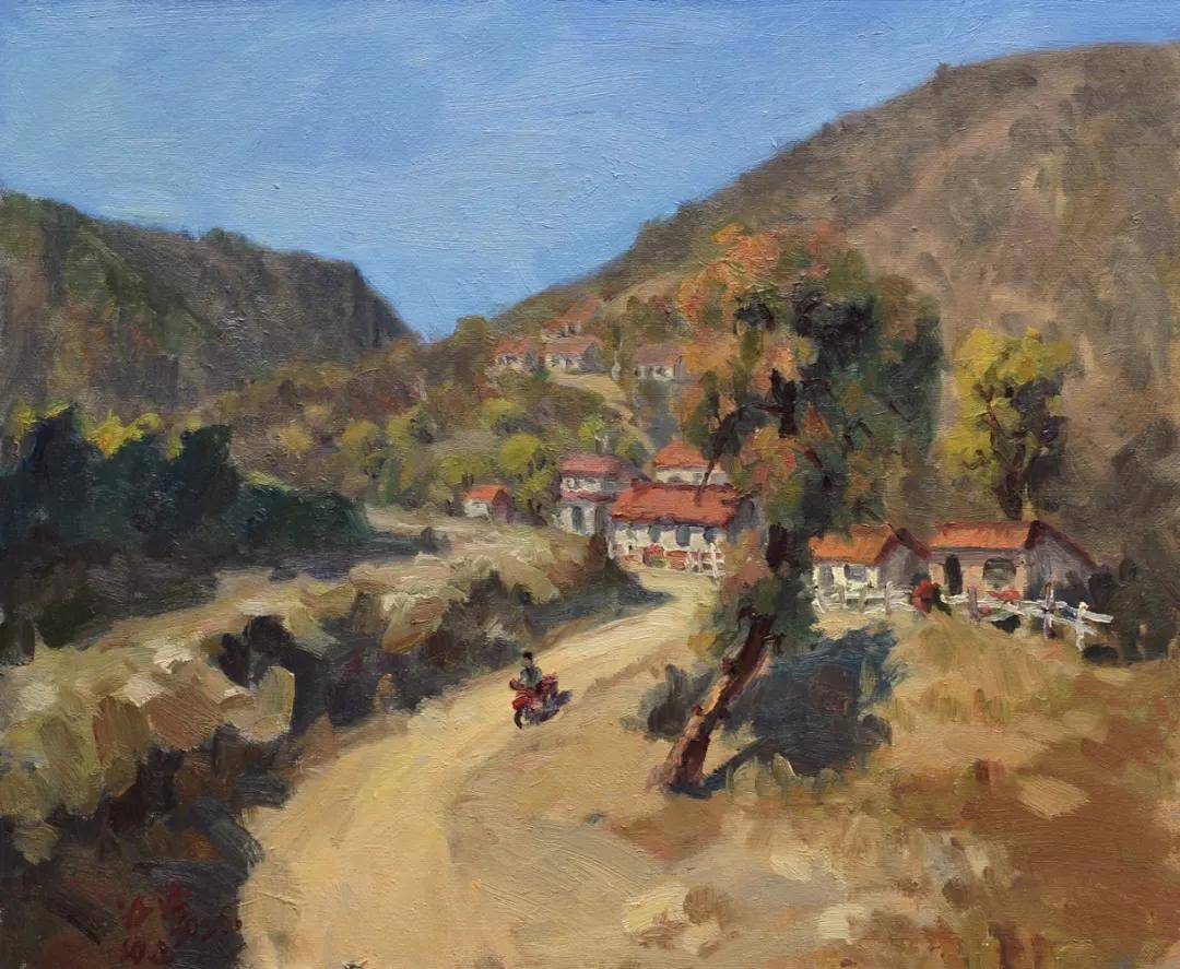 《山里人家古道边》 油画 江浩