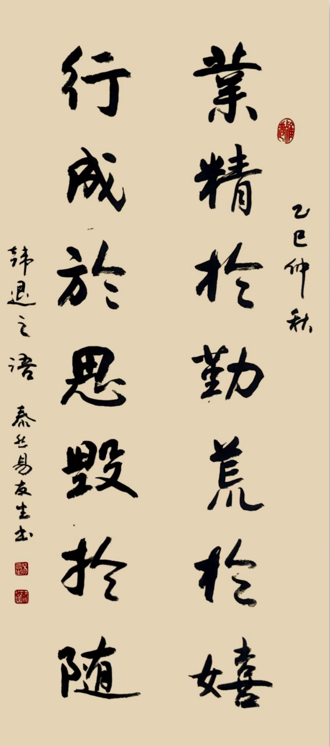 易友生,笔名:泰然,1944年5月出生于湖南省黔阳县(现为洪江市)。武汉大学电力学院毕业,原工作于湖南电力公司怀化供电公司,高级工程师,长期从事技术工作。现为北京国臻艺宛书法院书法院士,中国书画家协会会员、一级书法师,CCTV—中央电视台书画院客座教授。