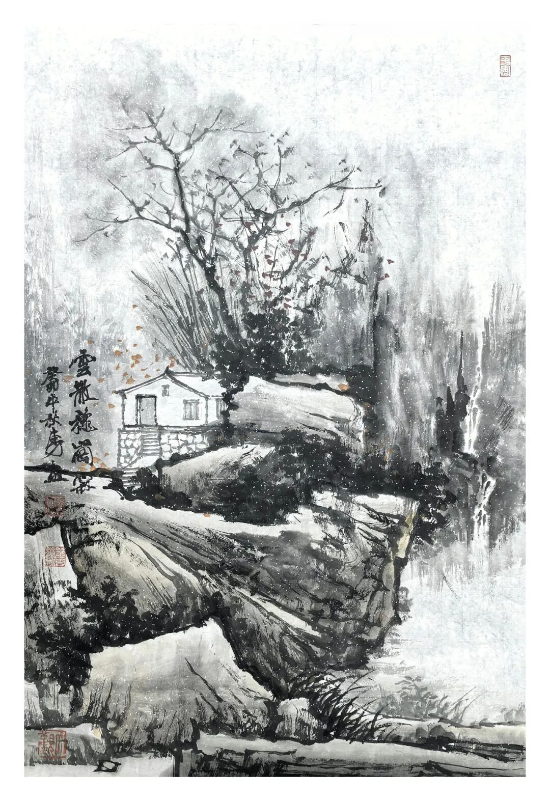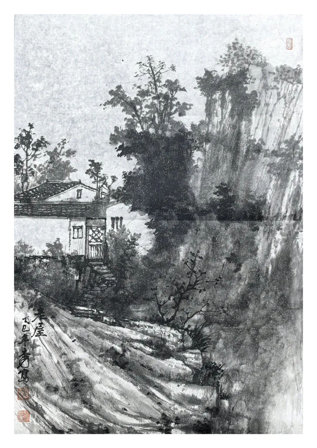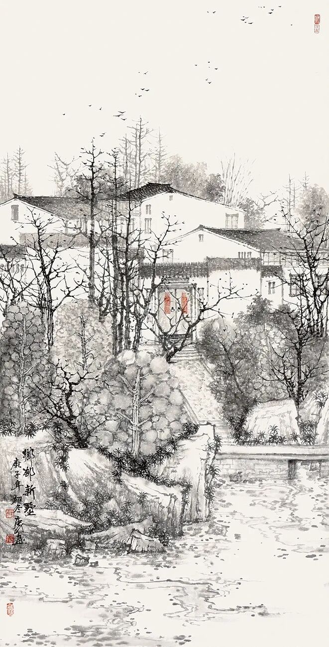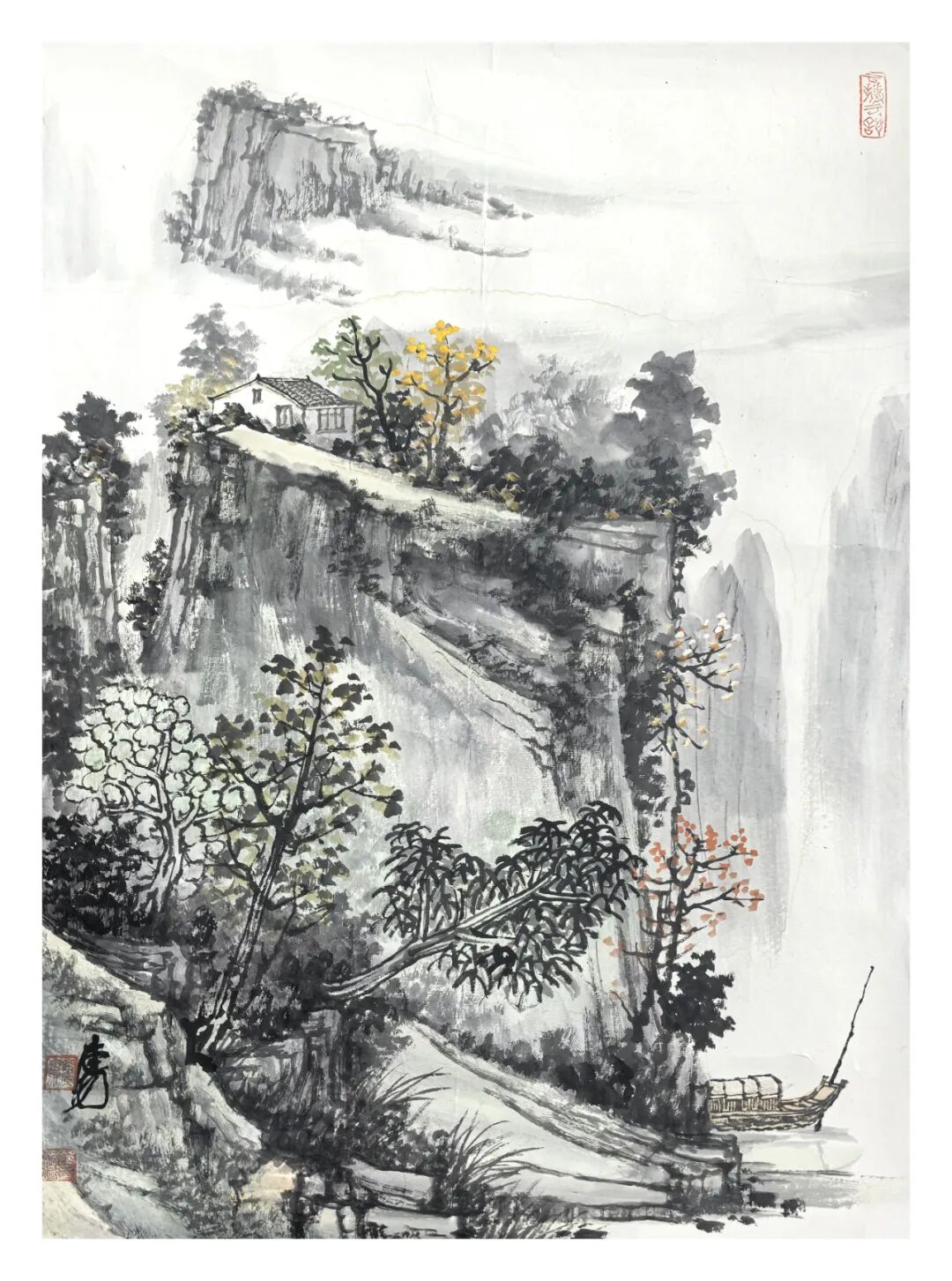 方本幼在坚守传统山水画根基的同时,积极探索创新 。他借鉴现代艺术观念,如抽象构成、色彩构成等,为山水画注入新元素 。在构图上尝试打破传统对称式布局,采用更具动态感的形式;在色彩运用上,除传统水墨外,适当融入现代色彩理念,使画面更具视觉冲击力 。