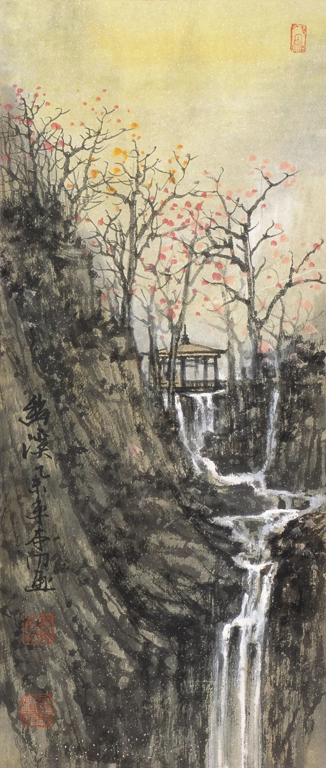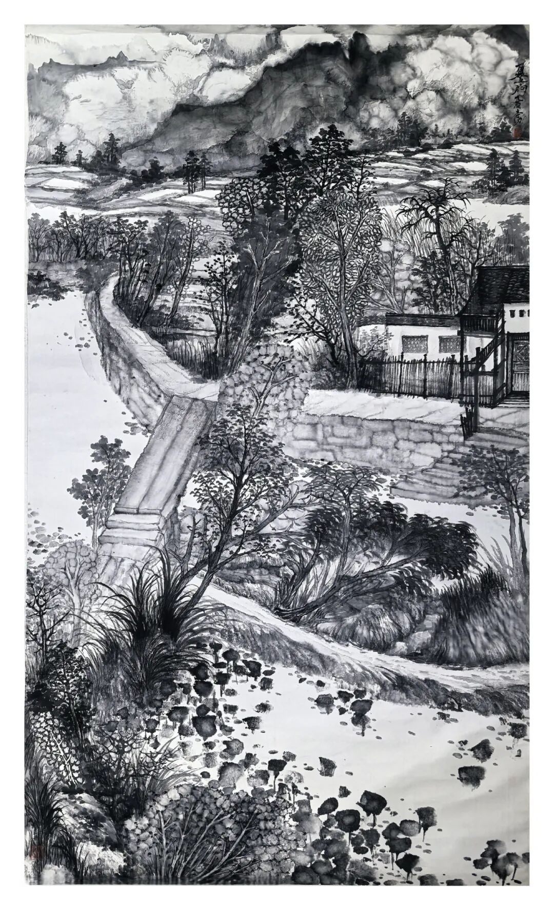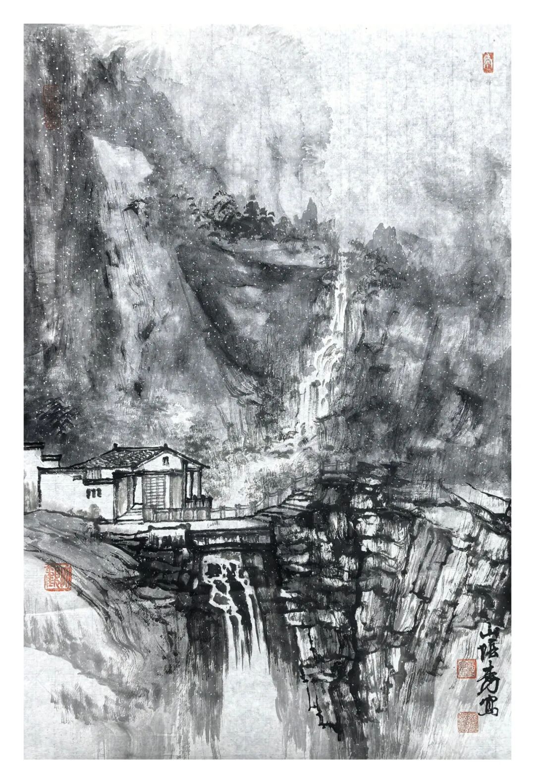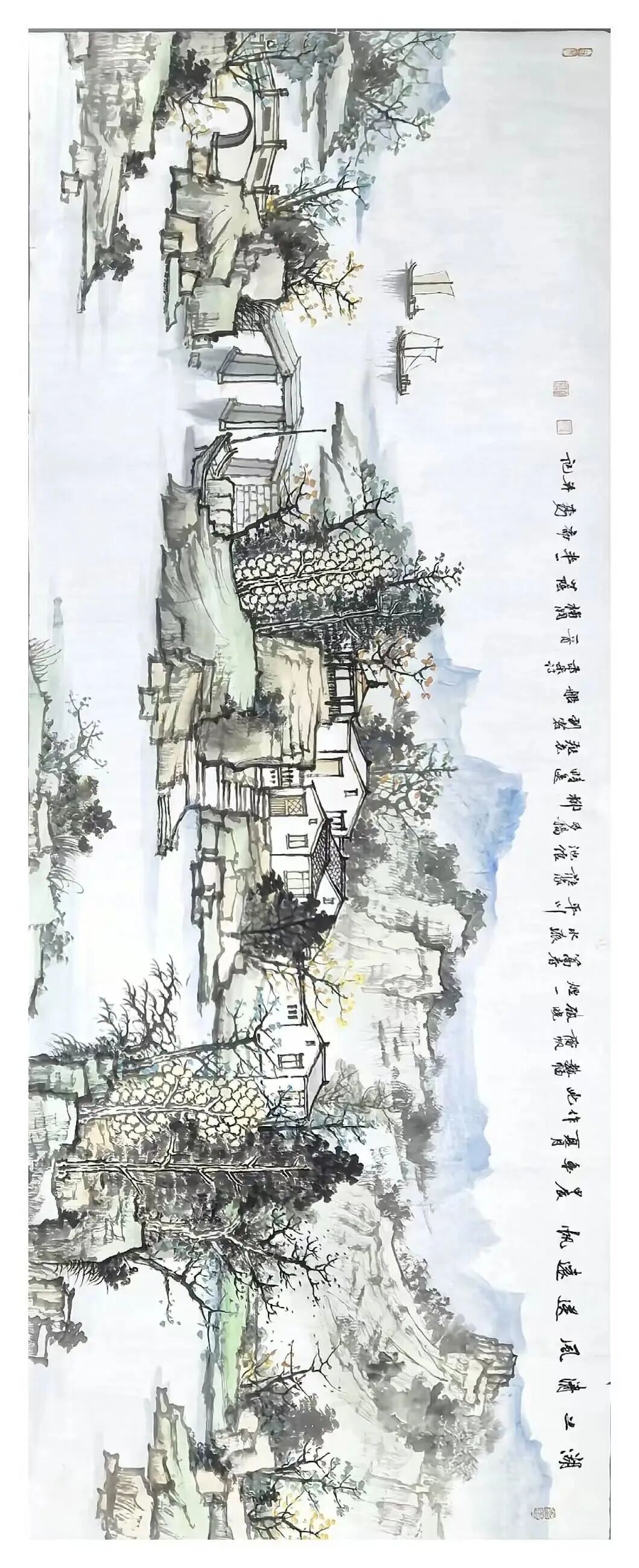 方本幼在坚守传统山水画根基的同时,积极探索创新 。他借鉴现代艺术观念,如抽象构成、色彩构成等,为山水画注入新元素 。在构图上尝试打破传统对称式布局,采用更具动态感的形式;在色彩运用上,除传统水墨外,适当融入现代色彩理念,使画面更具视觉冲击力 。