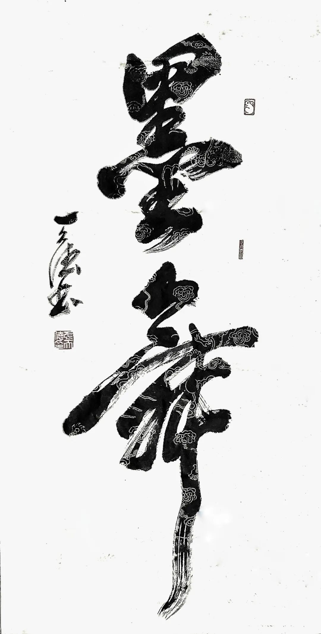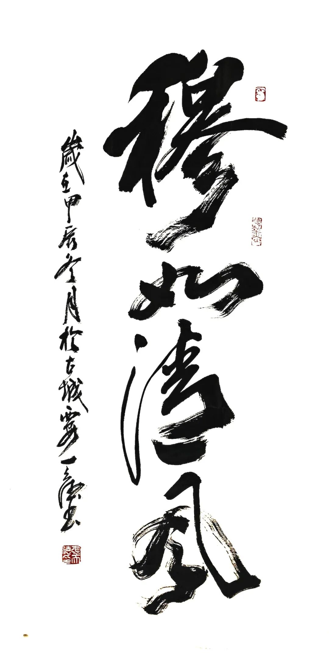 碑帖融合,是当代书法艺术审美的重要课题。这个课题将改变书法唯帖学,单独表现书卷气息的现象,也将改变书法唯碑学,单独表现雄风劲骨的质感,从而让书法走上真正的刚柔相济、风度与风骨并立的道路!许多人对碑质与帖韵的融合,存有怀疑态度。理由是碑的金石质和帖的自如风是两类书风,把方峻坚削与流动恣意合并起来,就如同把坚硬的固体与柔软的液体拥立在一起一样,似乎不可理解,也难以实现。但是天赋才华的张天德先生,因为深谙书法文化的龙脉凤络,所以在以碑益帖的高难度探究中,注以修为施以智慧,终于把似乎不可能变为可能,创造出碑帖兼容的新法度!师碑立骨,写帖传神,得张旭笔法精髓,得颜真卿用墨的硕劲,再切入龙门二十品的铁打钢铸,在行草创作时大小可由,放手写心!或滞涩蓄势,或纵笔如飞,行则痛快,止则戛然,创造出神风淋漓冥渺不存的非凡正气!狂笔揽雄才,落笔纵神风,他的书法在碑帖合流的探究中,攻坚克难,已经功立峰巅!