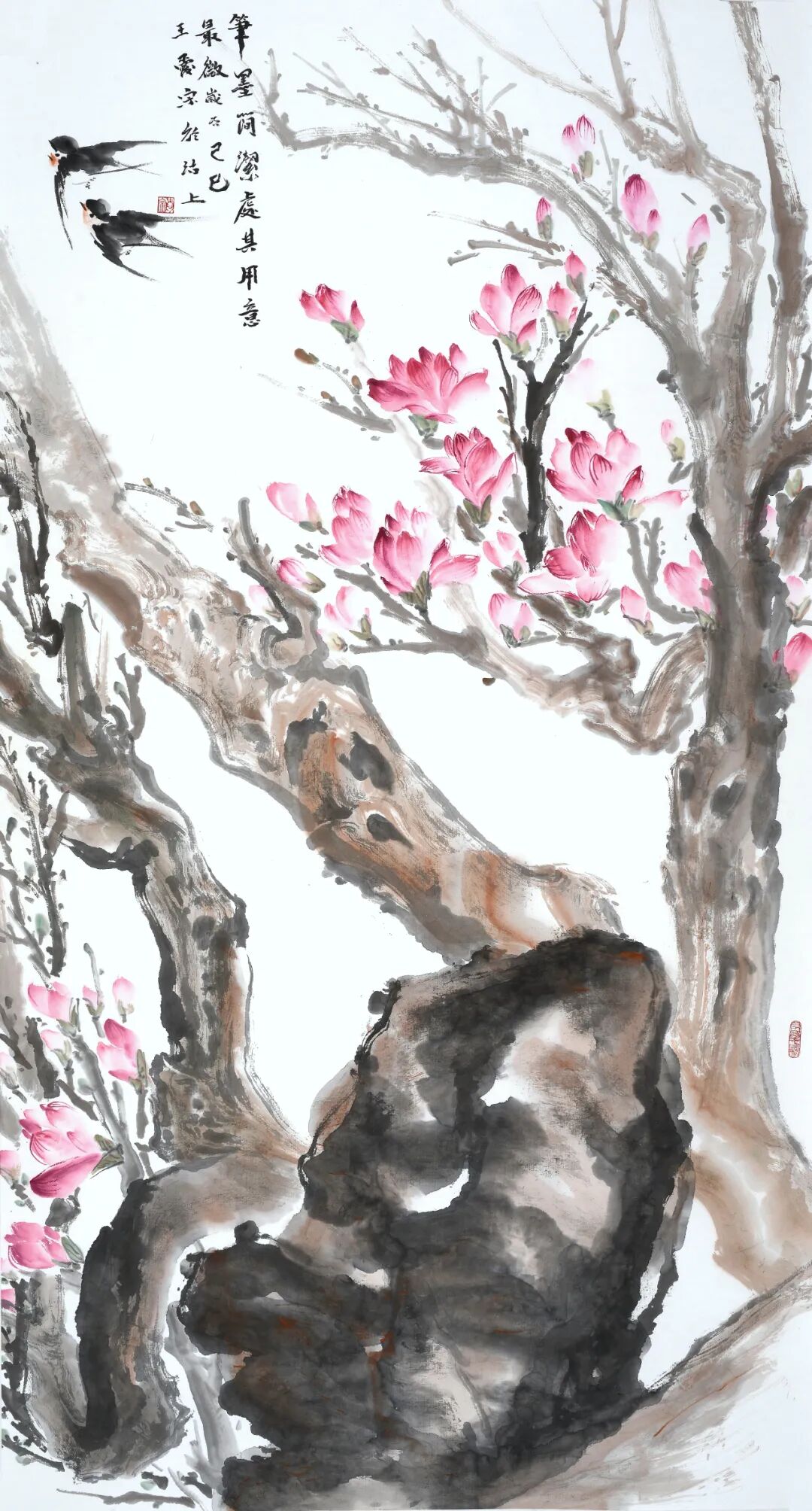 翰墨挥洒,若蛟龙游天,刚劲处似壮士舞剑,豪气干云;笔锋流转,如清风拂柳,飘逸间尽显柔美,雅韵悠长。山水画卷,层峦叠嶂,翠色欲流;江河湖海,浩渺无垠,涵容天地。娇花带露,鸟翼振风,梅兰竹菊,君子四德,皆于笔墨色彩之中,绘就卓尔不群的艺术盛景。