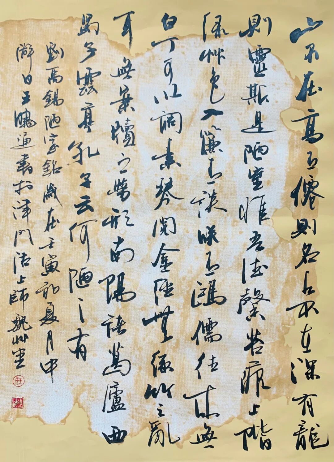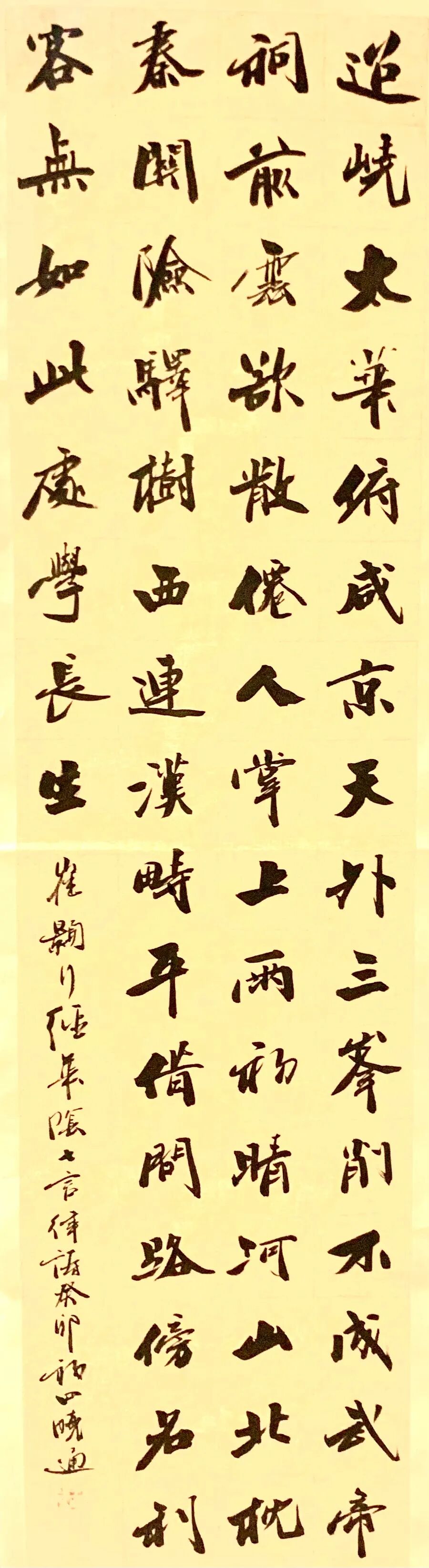 1958年生于天津市,中国书法家协会会员,南开书学研究会副会长,中国建设书法家协会理事,天津印社社员。1976年,未及弱冠,经过层层筛选,以其聪颖的天资和良好的书写基础,入选由我和宁书伦先生执教的文革后天津市第一个青年书法学习班。自此三十余年潜心笔墨、砚池勤耕,从孙伯翔先生学习北碑,和宁书伦先生学习“二王”和赵体,追随我学习行草篆隶和篆刻。先后从《胆巴碑》、《麓山寺》、《元略墓志》、《经石峪》、《铁山摩崖》、《杨淮表记》、索靖《出师颂》、《张迁碑》、《书谱》、《史平公》、《张猛龙》、《毛公鼎》、《峄山碑》、二爨诸碑帖取法,日日临池、不辍寒暑,功力日臻。其楷书雄强刚健、方圆并重;行书古朴洒脱、宁静中寓动势,飞扬中见沉稳;草书融二王、孙过庭,并融会贯通北碑风骨,劲健潇洒、飘逸灵动;隶书大气磅礴,厚实凝重。