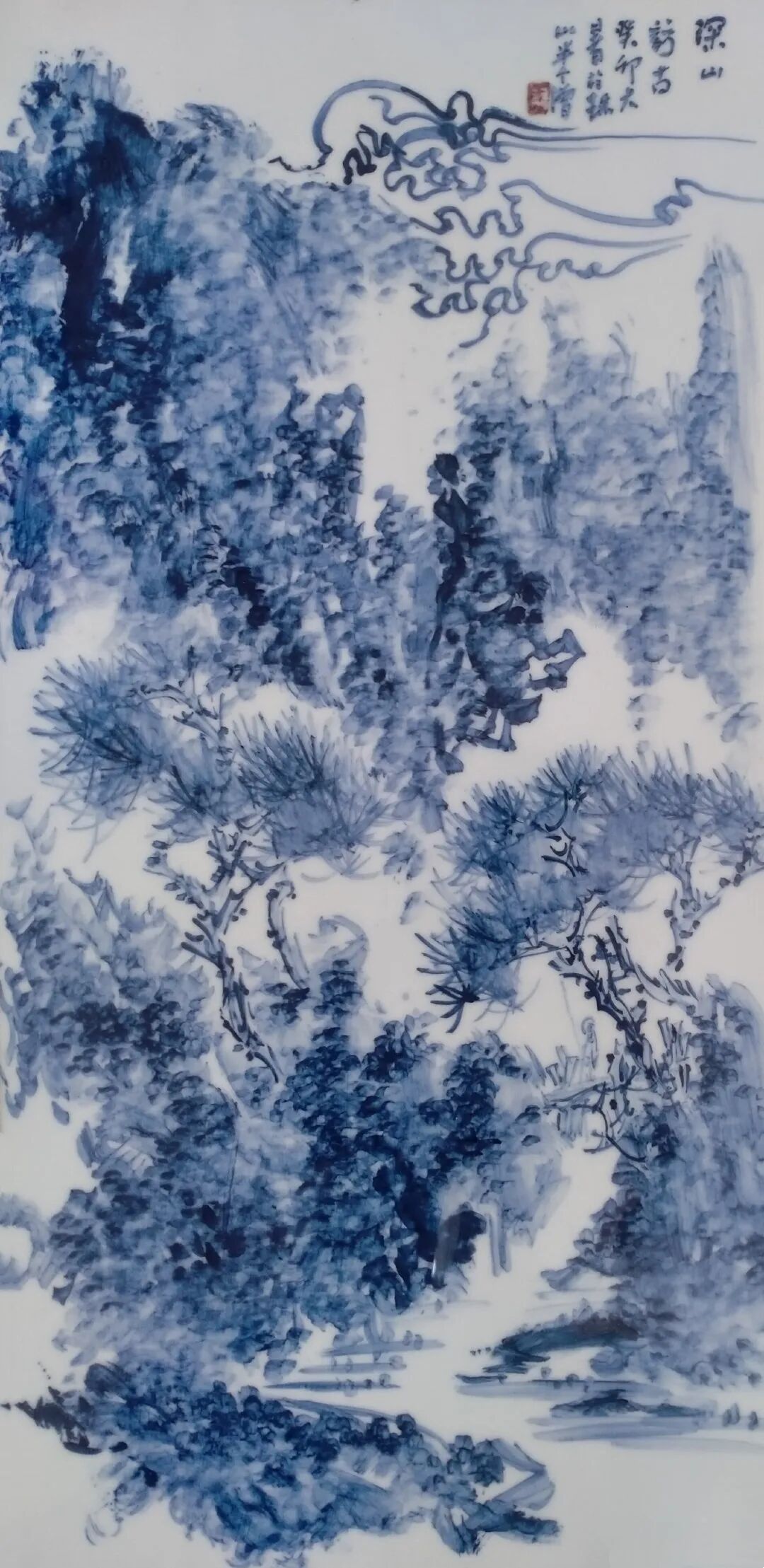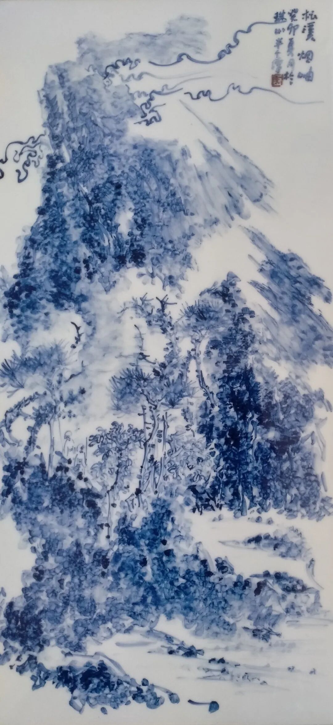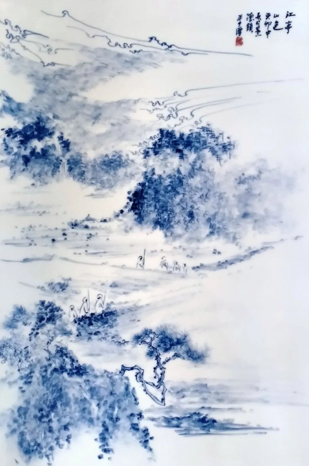 他对笔墨悟性很高,他把传统画法上的淡墨积染,简笔淡墨,湿笔浓墨等并转换表现到中国最伟大的青花瓷器上。青花的料性并有火的燃烧。这跨界的造诣在马程的笔下各臻其妙,充满“逸气”的画面让人恨不身居其间。
