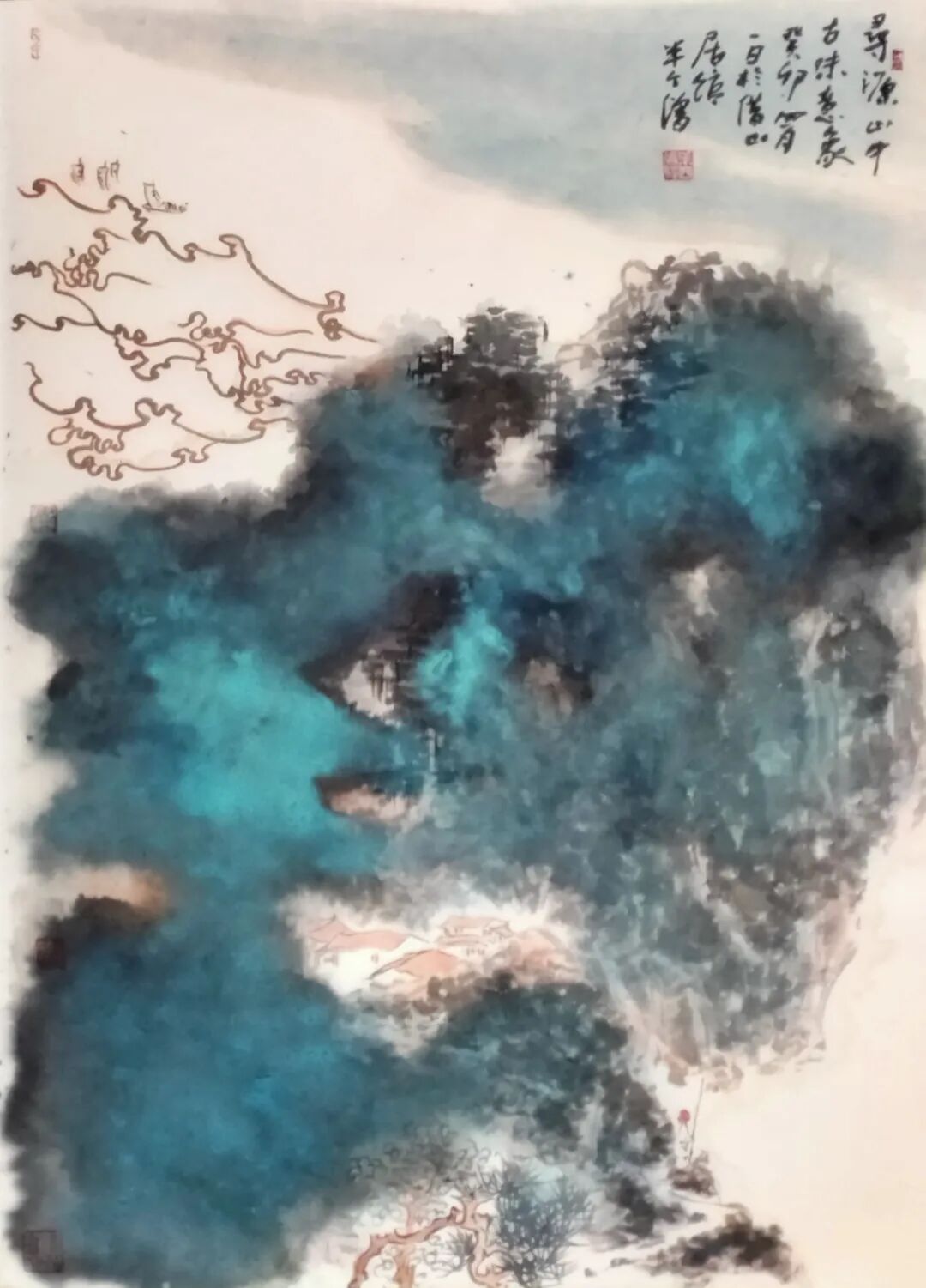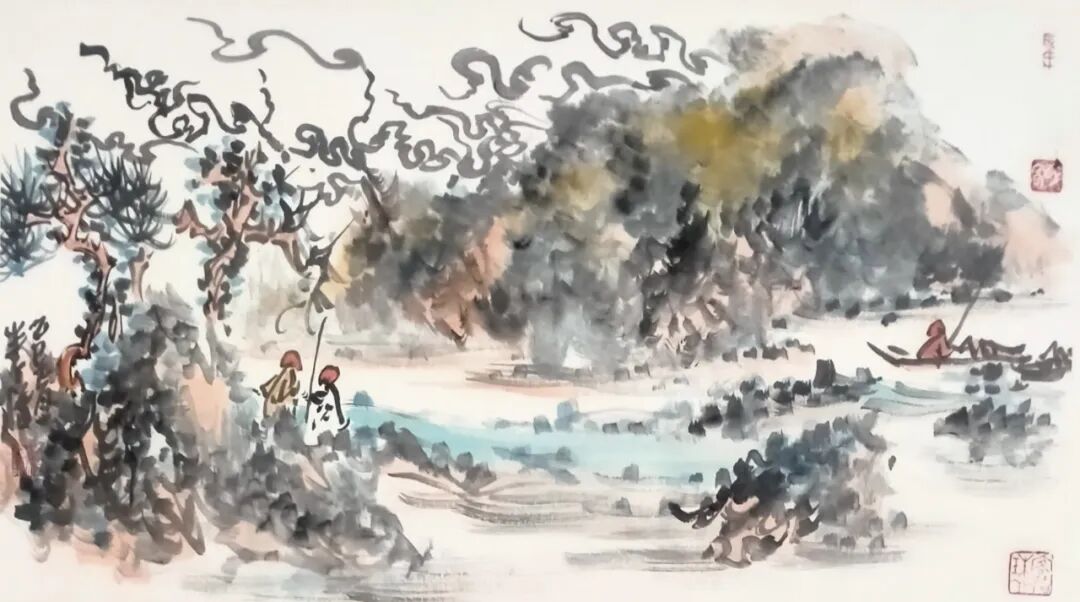 马程的画,有文人率性的写意性,线条放松,笔走龙蛇,自由而流畅,如高山深处溪流,生动活泼。画面上的线与面,虚与实,浓与淡,白与黑,彼此依托,相得益彰。他既有对传统的继承,又有对生活的热爱,既注重遵循自然规律和艺术创作规律,更注重用自己的奇思妙想,领悟生发,对自然的物象,进行艺术加工,从而释放自己的心声,“吾手写吾心”。细细品读,使人感到古风浓郁,逸气回荡。他的画重“写”,而不重制作,“写”的自由完整,“写”的充满个性,“写”的淋漓酣畅。后人解读古代的文字,初觉难懂艰涩,宛如天书,待你稍懂规律,就定能渐入佳境,而愈看愈觉这字里行间蕴藏着深奥的学问,弥漫着深厚的古老和深刻的哲理。不然,怎能这样的郁郁勃勃,气韵万千?