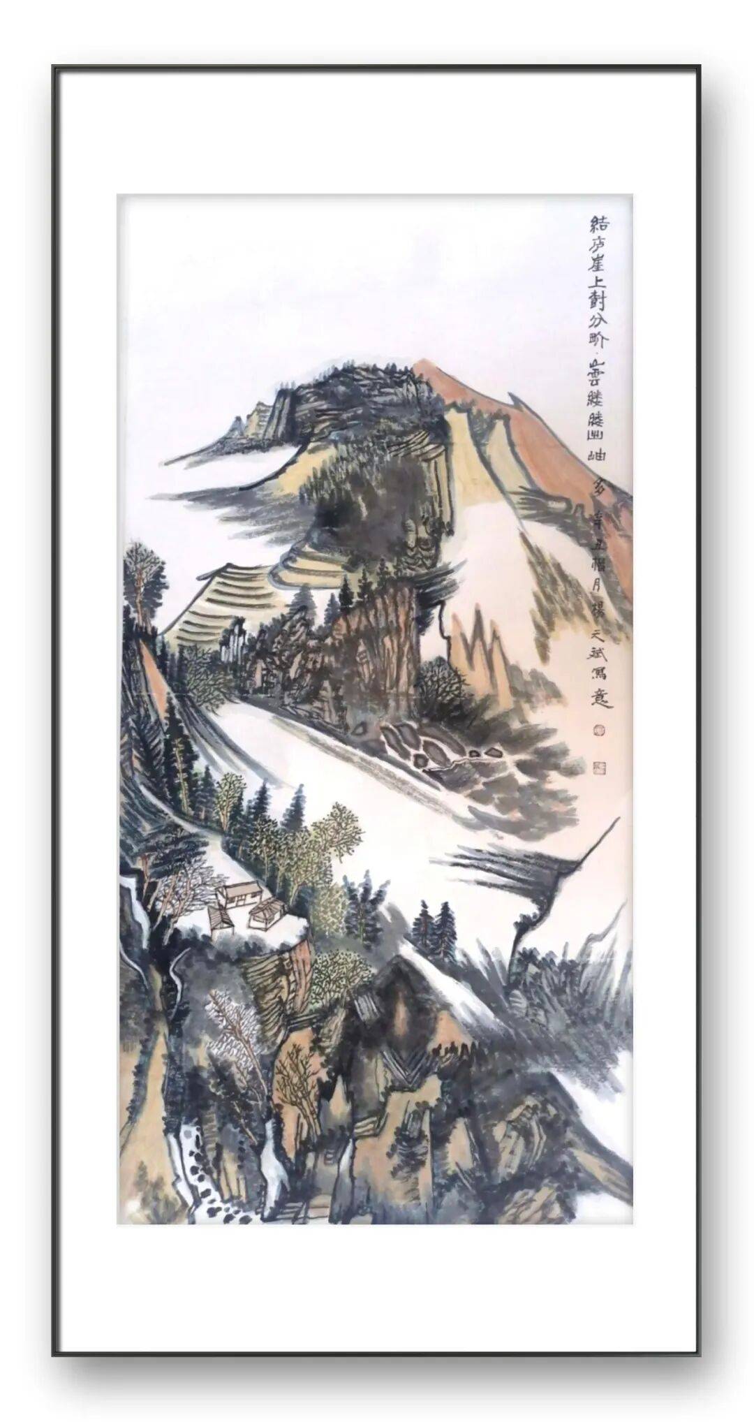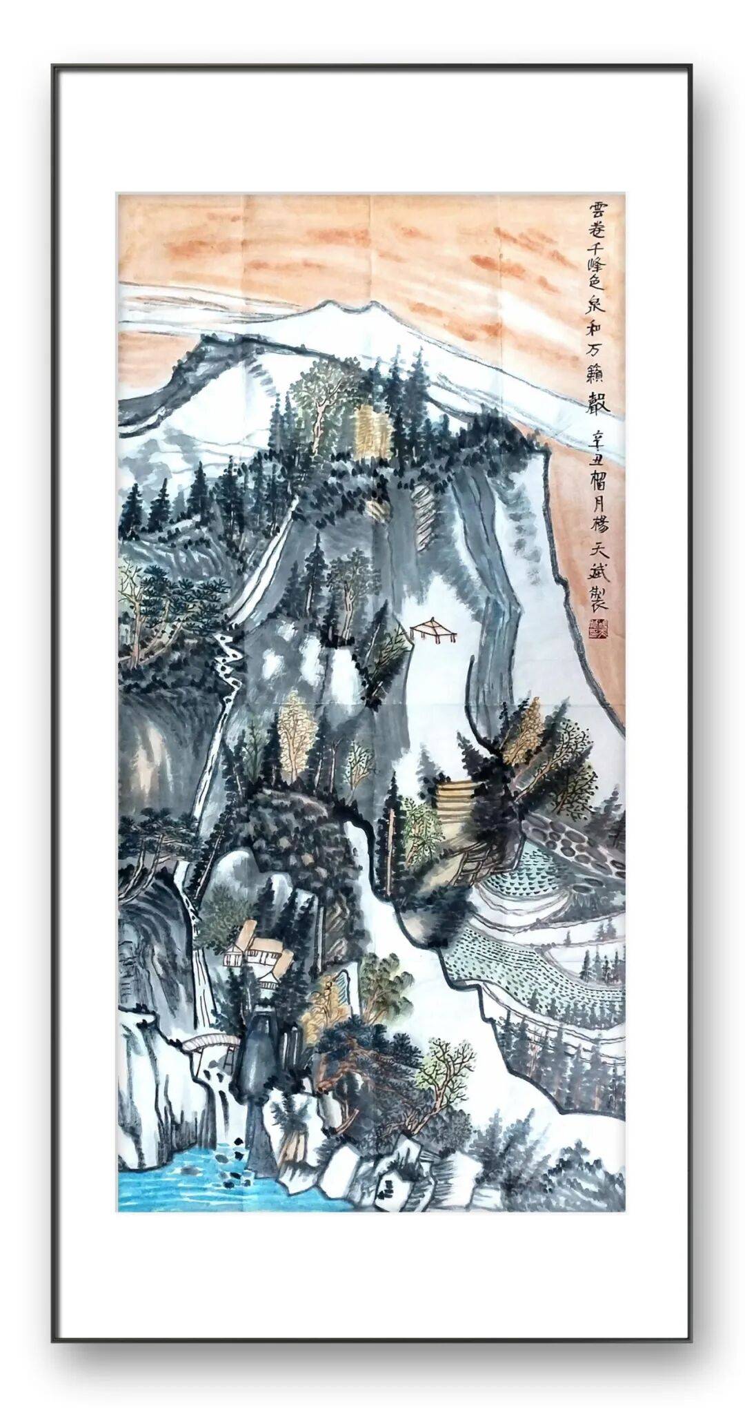 传统山水画的技法传承,是杨天赋老师作品的根基所在。他对传统皴法与墨法的精妙运用,达到了炉火纯青的境界。皴法作为表现山石纹理与质感的核心技法,在他的笔下焕发出多样生机。斧劈皴的凌厉刚劲,被他用于刻画陡峭山崖,一笔笔利落的线条,如同利刃劈砍山石,将岩石坚硬冷峻的质感展现得淋漓尽致,让观者仿佛能触摸到山石的粗糙肌理;而披麻皴的柔和细腻,则适用于描绘平缓山坡与丘陵,线条层层叠叠、疏密有致,模拟出山石表面因长期风化形成的细腻纹路,尽显山水的温润之态。