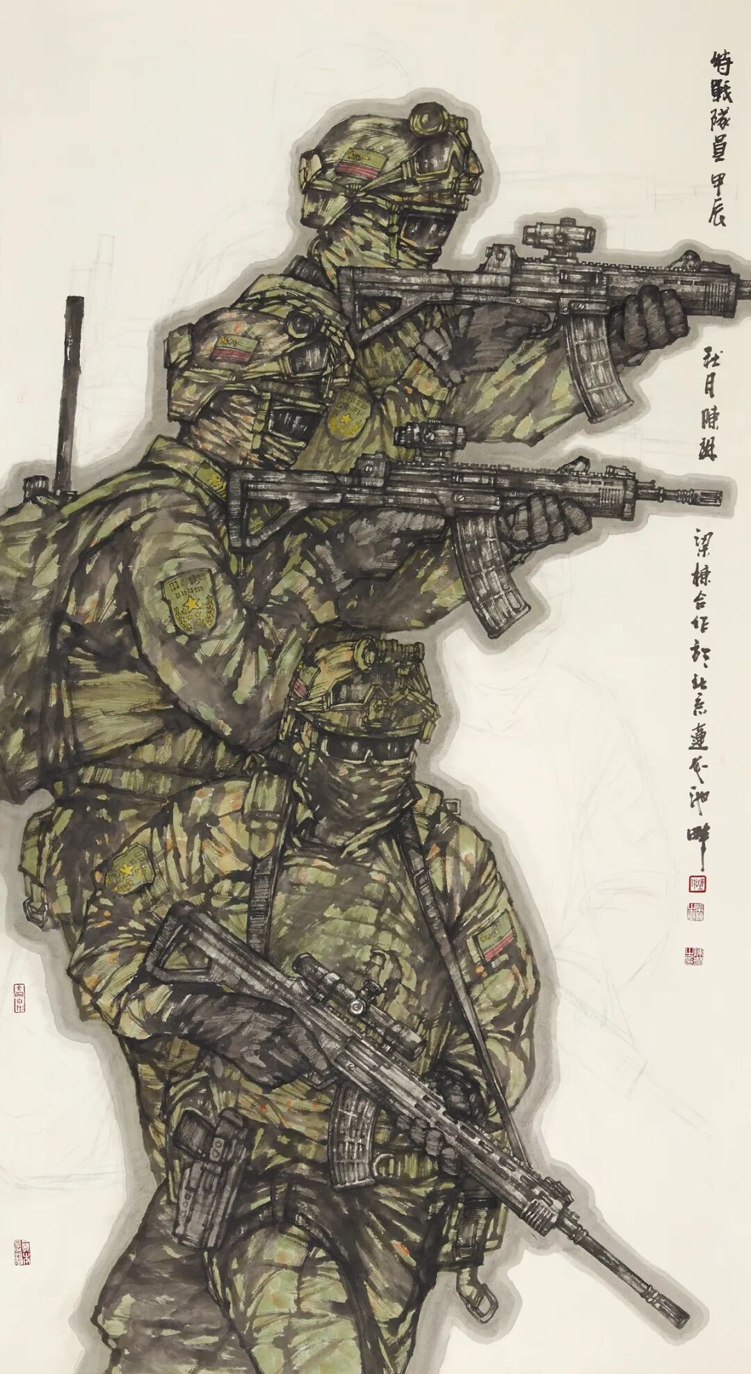 以上这些问题的原因所在:一是我们很多人,其中也包括一些所谓的文化名人在思想上、观念上被西方文化所误导或者说被洗脑,丢失了文化的自信心。二我们缺少理性思考,没明白东西方文化的各自不同,更不清楚由于不同的意识形态西方对我们文化渗透的真正目的。这种渗透是循序渐进的,它会使我们在不自觉中偏离我们民族文化的发展方向。三应该清醒意识到中国文化的标准应由我们来制定,话语权是我们自己而不是西方。如果我们还肓目无知的追风推崇,我们几千年的华夏文化会被西方撕扯的支离破碎,最终将失去文化的本土性、民族性。《特战队员》90X180㎝ 2025年