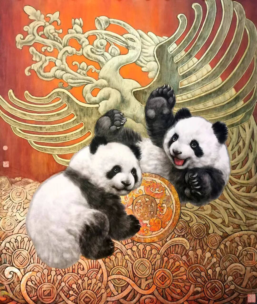吉祥双宝 68×68cm 2023年