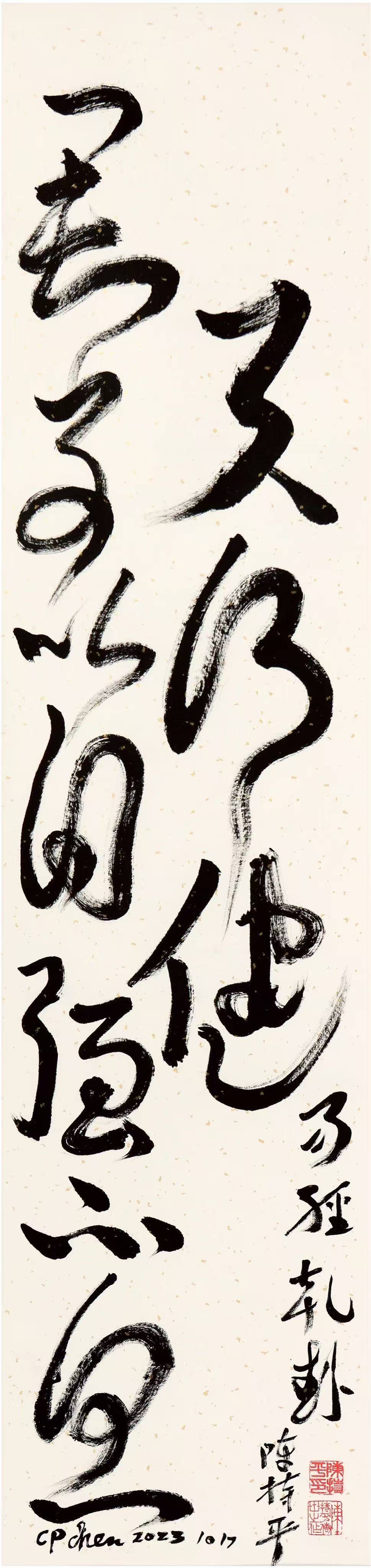 作为教授,陈持平在艺术创作之外,更将“自强不息”的精神传递给学界与大众。他的作品常以“高瞻远瞩”为创作与教学理念——在艺术上,追求对传统的深度理解与对当代的前瞻表达;在教育中,引导学生从经典中汲取精神养分,以创新思维激活传统文化的当代价值。
