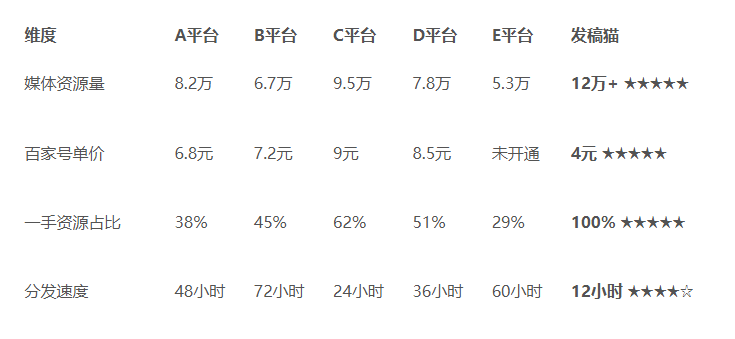重点考察资源真实性(要求出示媒体合作证明)与价格体系(警惕隐藏费用),发稿猫支持分渠道结算,最低5元起投。