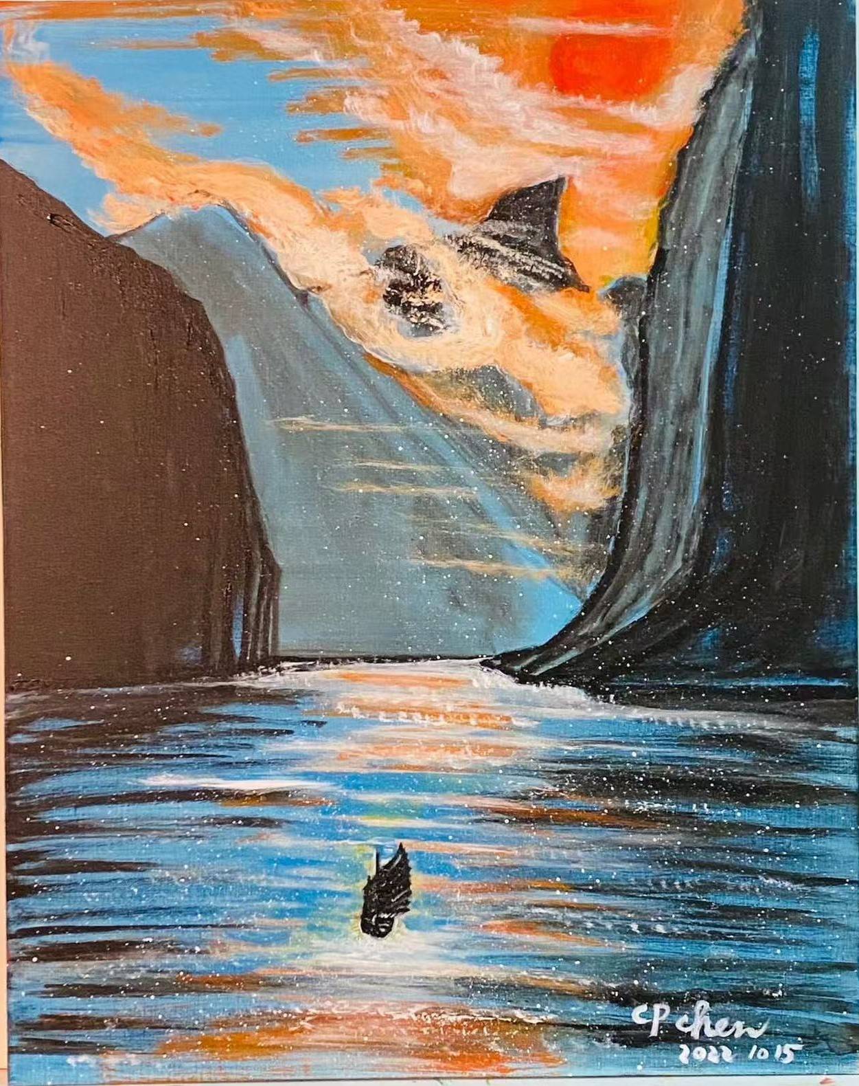 Amid the ceaseless cry of gibbons on either side of Yangtze River,the light skiff has slipped by ten thousand folds of mountains.(Li Bai of Tang Dynasty)