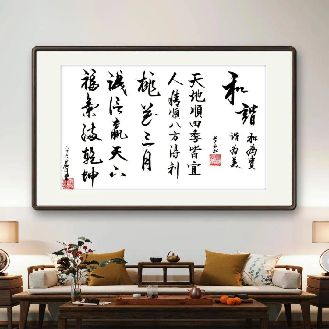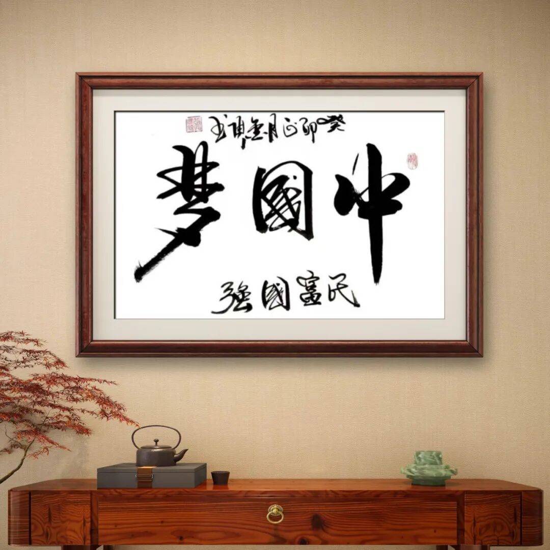 对于行草,张金顶先生更是深得“二王”及历代行草大家之精髓。其行草作品中,笔势连贯,气韵流畅,点画之间顾盼呼应,如《中国梦》,线条或提按顿挫,或婉转萦带,于变化中求统一,于流动中见韵律。字与字、行与行之间,疏密相间,错落有致,营造出一种跌宕起伏、开合自如的视觉效果与艺术氛围,尽显行草“流美”与“飞动”的艺术特质,让观者感受到书法线条所蕴含的生命律动。