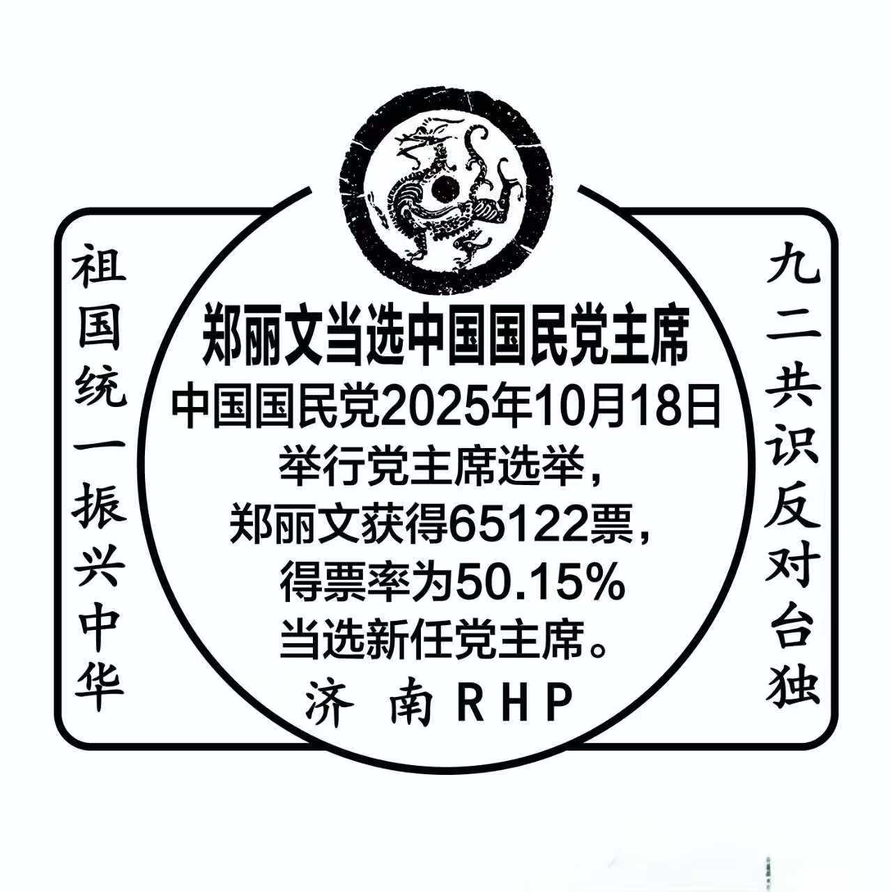 近日,一枚由邮票设计大师任怀平先生创作的《郑丽文当选中国国民党主席》纪念戳记及相关实寄信封,在集邮界与关注两岸议题的人士中引起广泛关注。这并非官方邮票,而是任老以个人名义(落款“RHP”)为记载重大历史事件而特意设计的纪念性戳记,其方寸之间的布局,堪称一份微缩的“反独促统”视觉宣言。