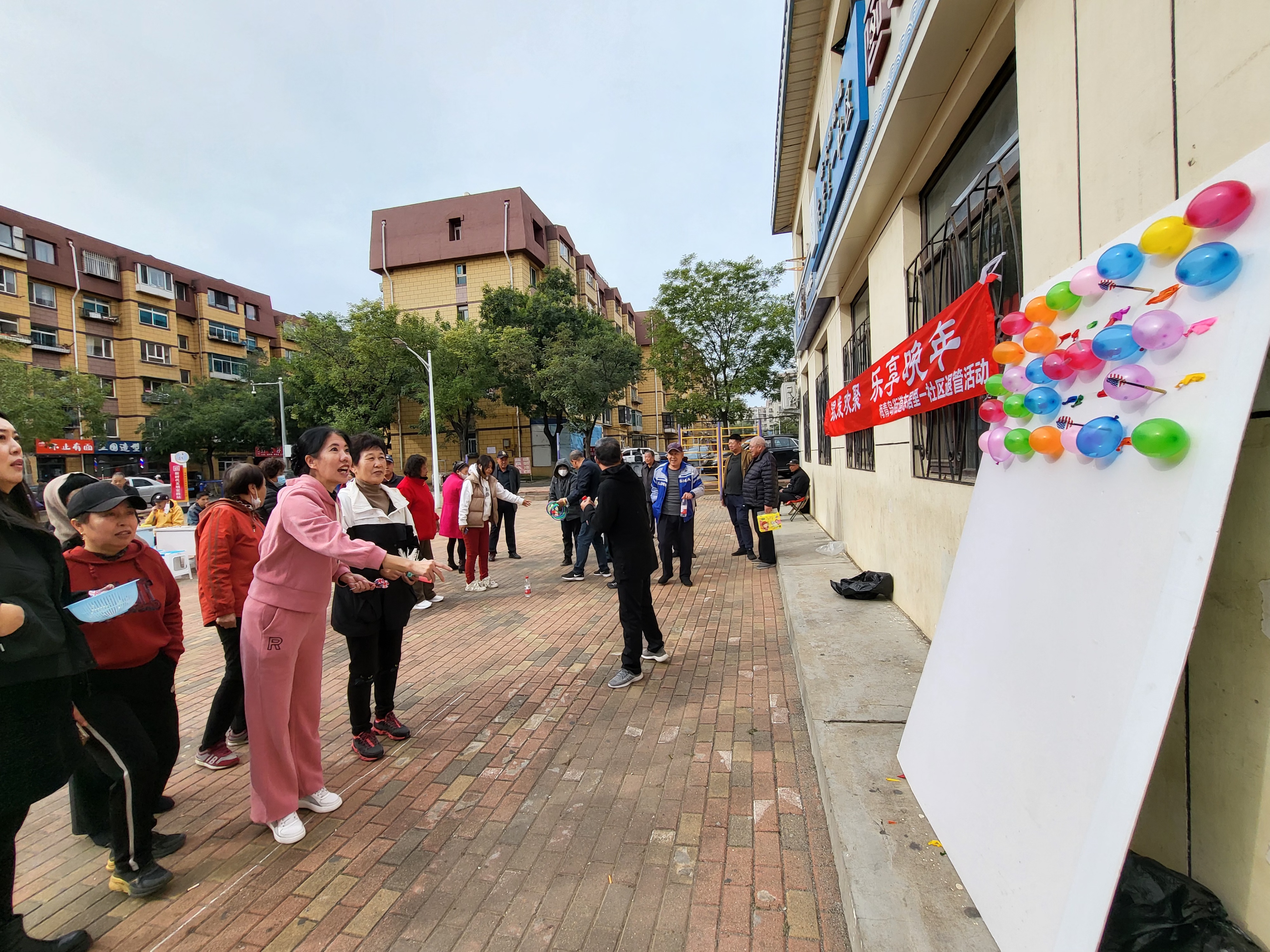 活动现场暖意融融,整齐的桌子上摆满花生、瓜子、橘子、香蕉等水果零食,老人们围坐在一起唠家常、话近况,邻里间的情谊在欢声笑语中愈发深厚。互动游戏区更是热闹非凡。“套圈赢好物”项目前,老人们兴致勃勃地站在指定线外,一次次瞄准各种心仪的奖品;“飞镖扎气球”区域,气球墙前人头攒动,老人们手持飞镖,扎破气球抽取纸条,小礼品的惊喜让现场喝彩声不断;“大屏欢唱舞台”上,经典老歌歌单引发共鸣,老人们或自愿登台演唱红歌、年代金曲,或跟着屏幕合唱,熟悉的旋律唤起青春记忆,让老人们尽显风采。