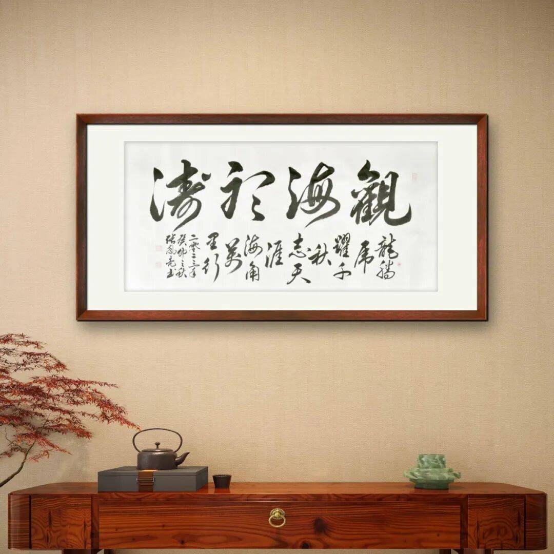 张凤亮先生以行草榜书的灵动,展现出大海波涛汹涌、天地辽阔的意境,笔画的飞动如海浪奔涌,字形的开张如海天相接,让观者于笔墨中感受到“观海”的壮阔与“听涛”的雄浑。