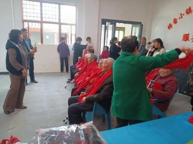 金桂飘香,秋风送爽。底张乡草庙岭村游客服务中心喜气洋洋,出自名家的巨幅“福”“寿”二字悬挂两侧,正中红彤彤的横幅格外醒目,来自村中的30多位老人依次入座佩戴红花。