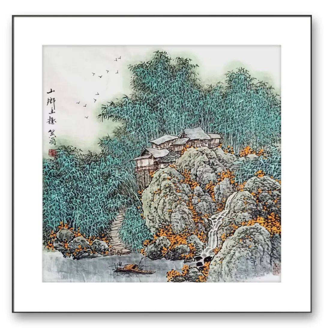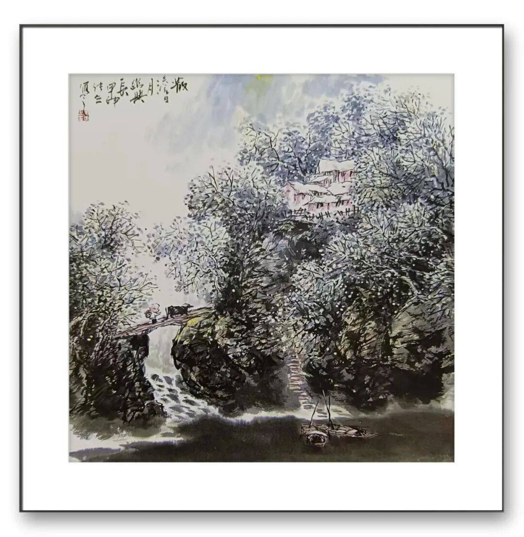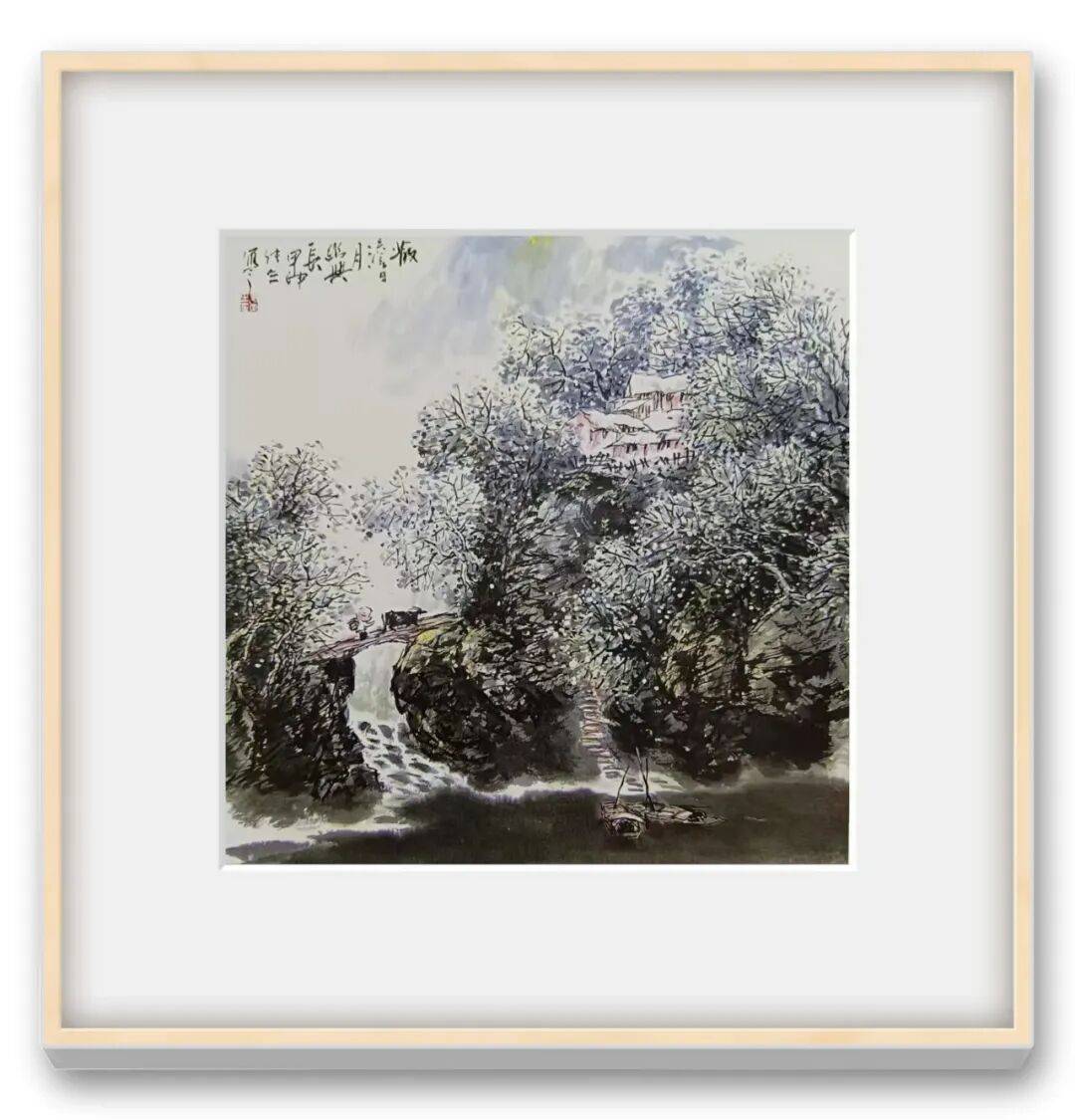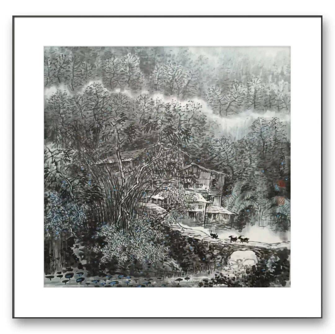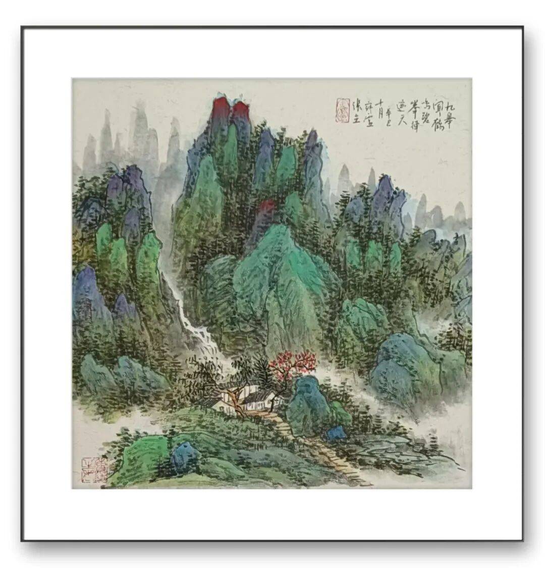 张立先生的彩墨创作题材广泛,涵盖山水、花鸟、人物、历史故事等多个领域,每个题材都成为他传递文化内涵、表达艺术思想的桥梁,山水画创作中,他既描绘名山大川的壮丽景色,展现出九华山的雄奇秀美;又关注乡村生活的质朴之美,画中描绘了乡村的宁静与祥和。这些作品不仅是对自然景观的再现,更是对人与自然和谐共生理念的表达,体现了中国传统山水文化的当代价值。