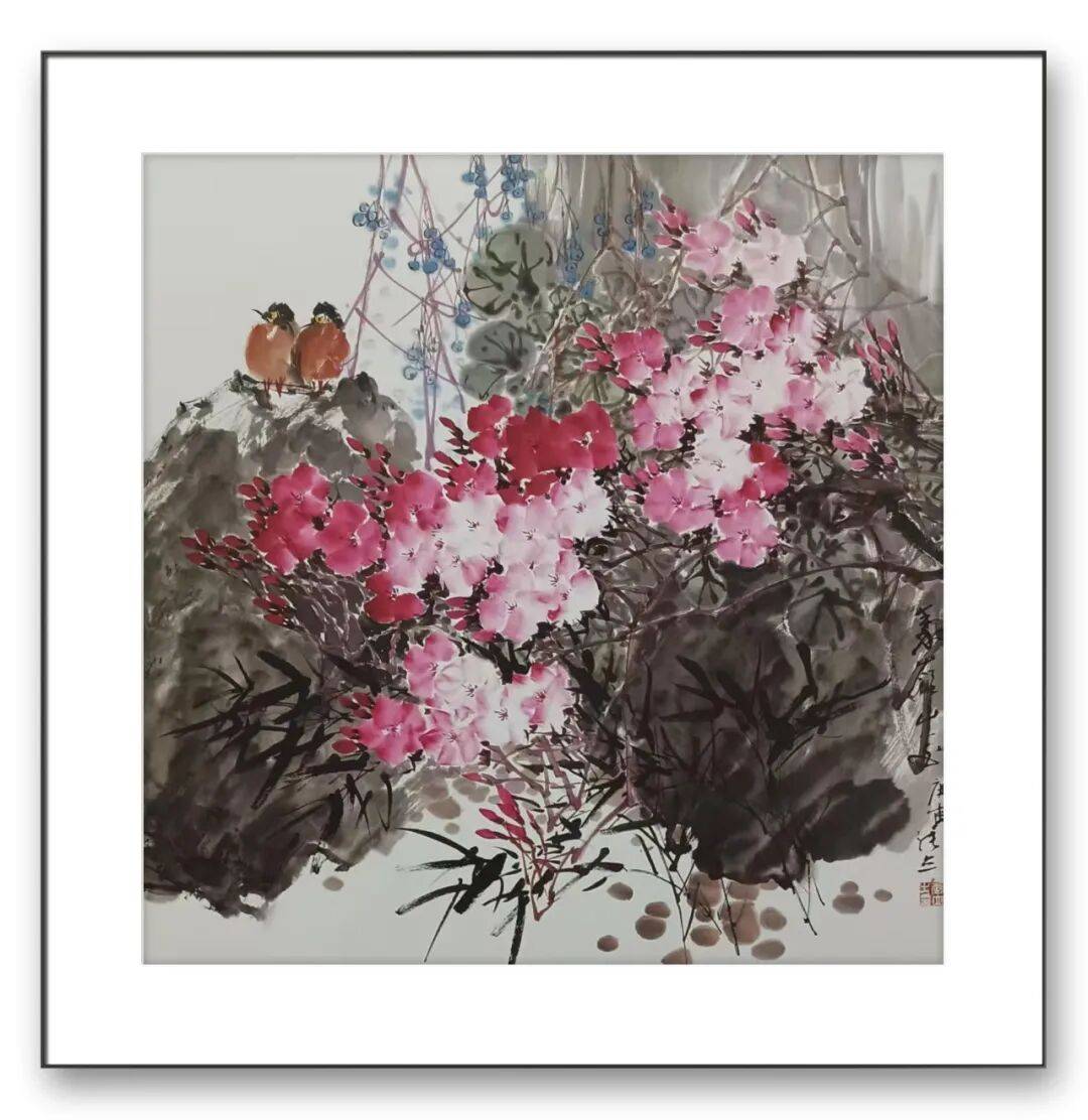 张立先生的花鸟画创作同样体现着对传统笔墨的精湛把握。禽鸟的羽毛以细劲的笔锋层层点染,生动逼真,颇有宋代院体画的工致细腻;而花木的枝干则以大写意的笔法挥就,酣畅淋漓,尽显徐渭、八大的纵逸风神。这种工写结合的笔墨语言,是张立对传统花鸟画“趣雅品高”审美追求的当代诠释。