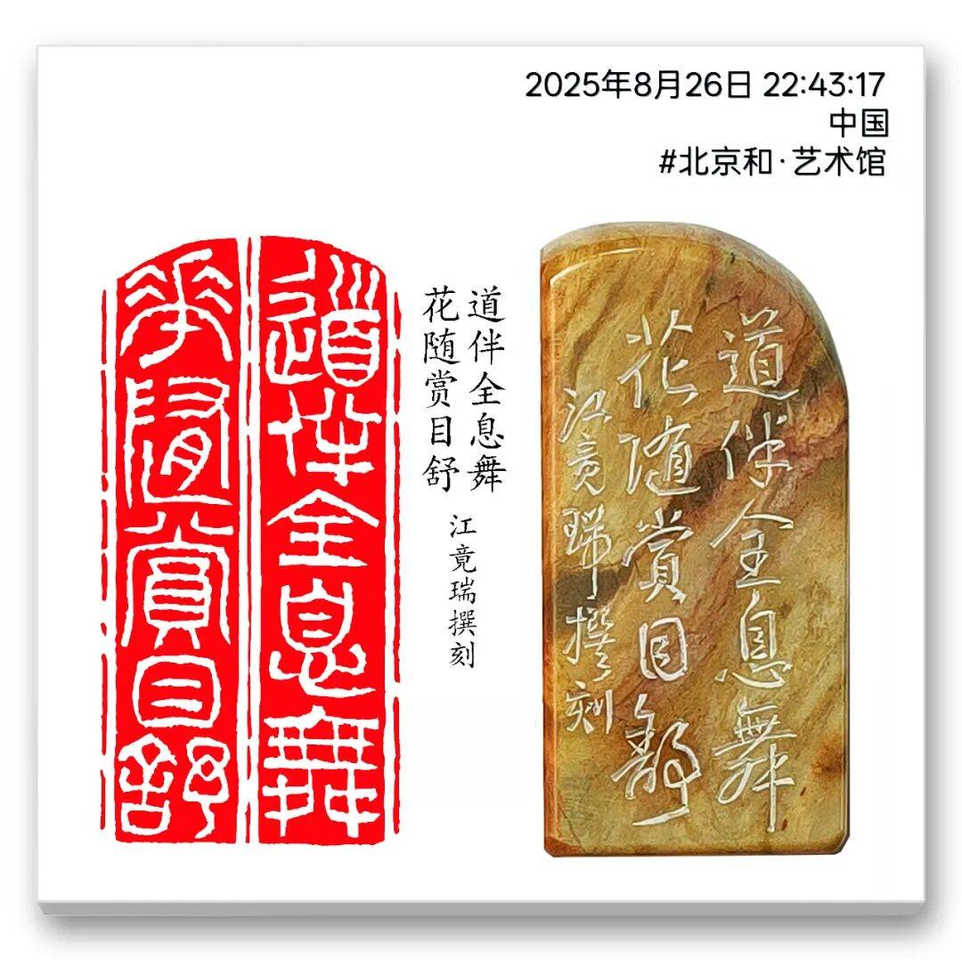 一方印,藏着千年文脉;一把刀,刻出万千气象。竟瑞的篆刻,于细微处见真章,于沉稳中显灵气。无论是姓名印的庄重,还是闲章的雅致,都传递出对艺术的敬畏与热爱。愿江竟瑞先生这一方方印石,能成为连接过去与现在的纽带,让更多人感受篆刻艺术的独特魅力。
