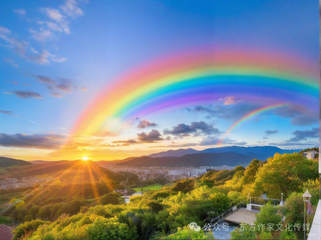 诗中意象构建极具巧思:以“伞”为轴心,勾连“夕阳停驻”“大海温柔”的天地之景,又借“喜鹊偷笑”“蜜蜂聆听”的生灵之态,为伞下私密时光镀上童话般的浪漫;更以“连断桥”“遮高粱”的笔墨打破空间界限,让伞内的情感世界与伞外的秋日盛景形成对比,凸显情感的浓烈与专注。