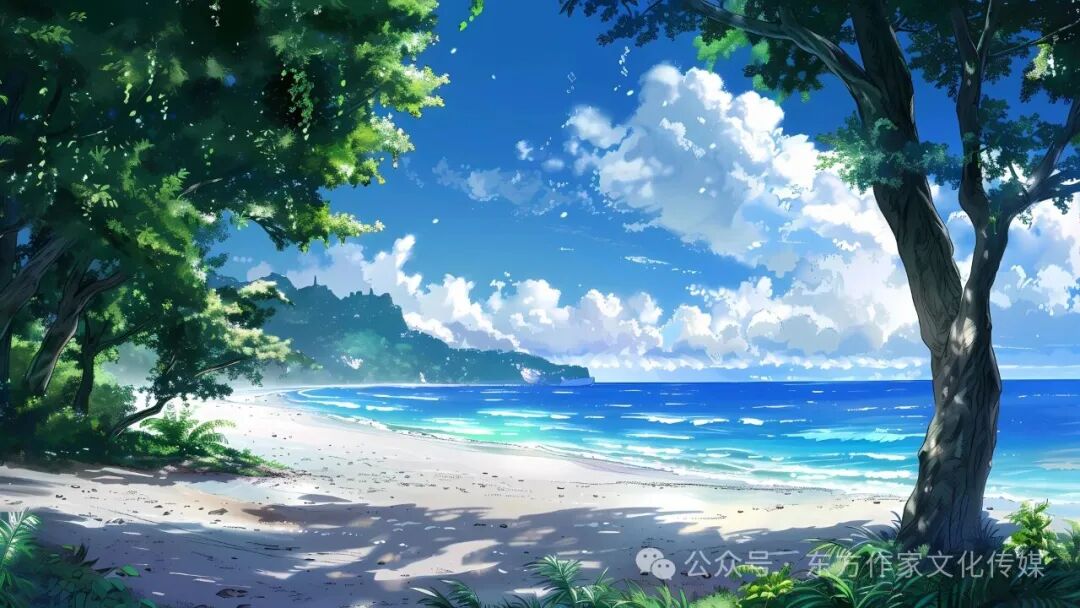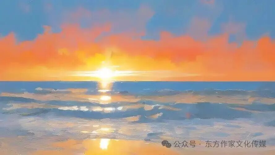 同时,诗人善用对比增强张力。开篇“夕阳炽热”与“大海冷漠”的冷暖对比,因“伞”的出现转为温柔,凸显“伞”的核心作用;“无山誓海盟”与“有心的共振”的“无”与“有”对比,强调爱情本质在内心共鸣。这些对比自然融入场景情感,不刻意制造冲突,却让诗意更饱满。