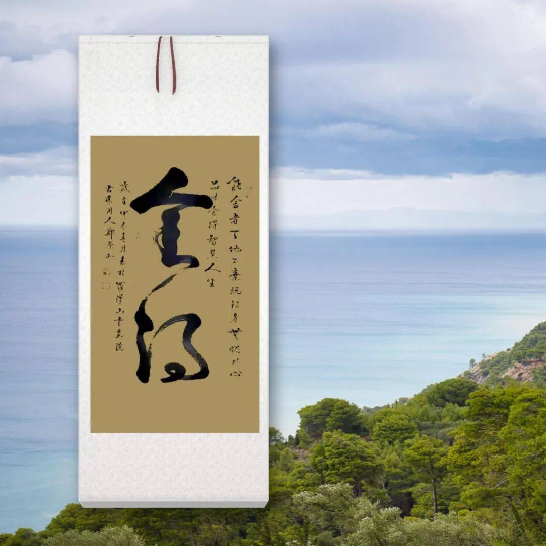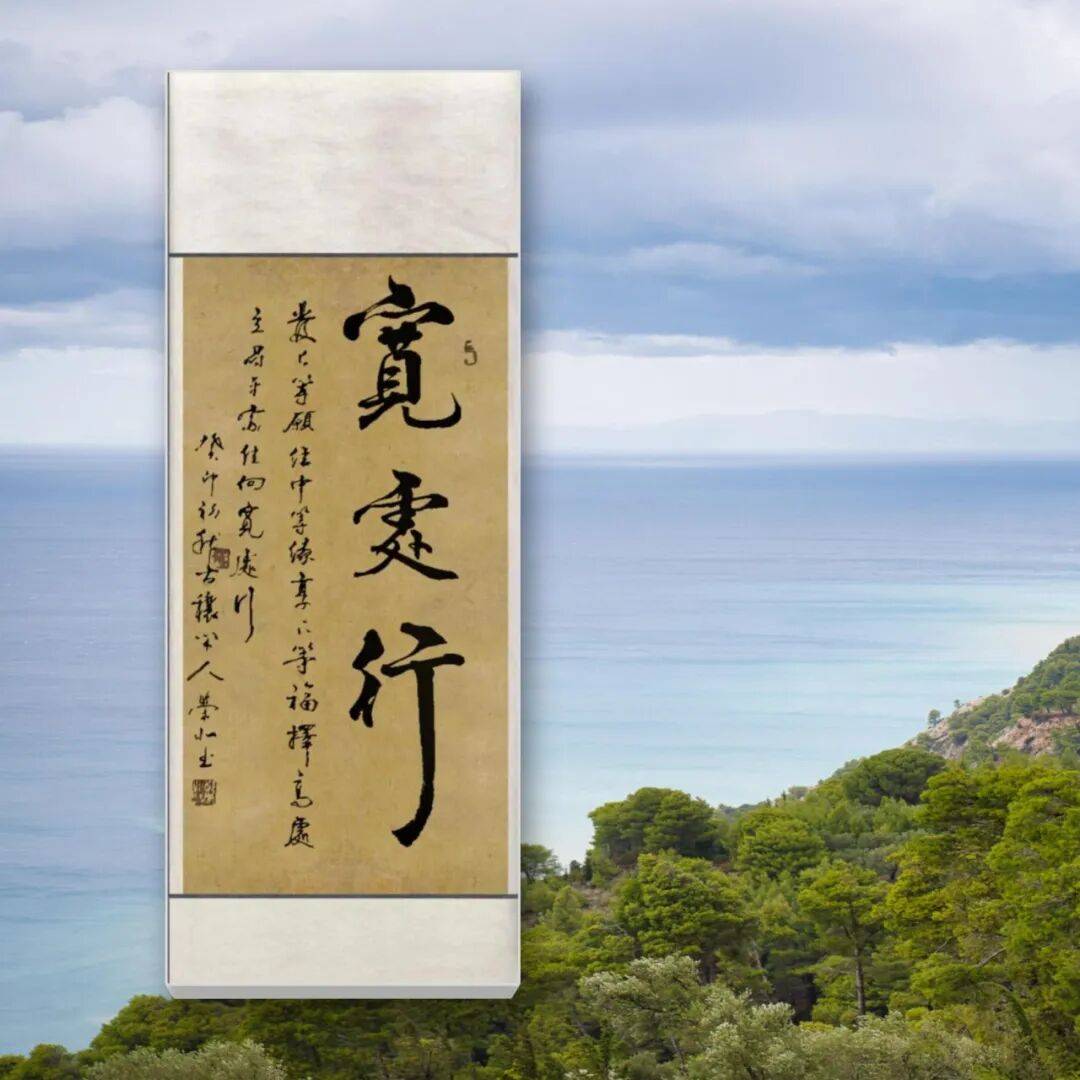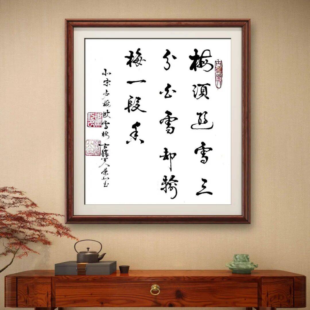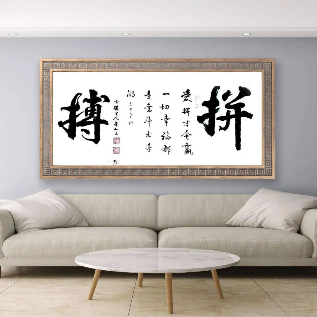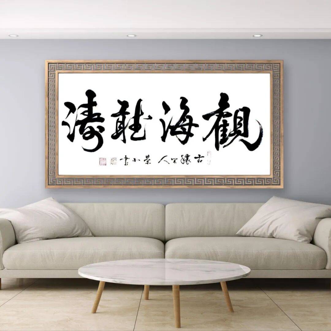 然而,郑荣北先生绝非传统的“复印机”,他的“不泥古”更见艺术智慧。在锋纤往来的运笔节奏里,他将书法的**高低之趣**与**丰神之姿**演绎得淋漓尽致。观其书法,行笔错落有致,字形大小相济,既有着楷书的端庄骨架,又有着行草的流畅血脉,“雅”字的舒展、“兰”字的秀逸,在布局中形成有趣的视觉张力;再看《观海听涛》,笔墨浓淡变幻,线条粗细交织,如海浪般起伏的韵律感扑面而来,将“听涛”的诗意与“观海”的胸襟通过笔墨形态直观呈现。这种在章法、笔法上的个性化处理,让他的作品跳出了古人的范式,形成了**“郑式”行草**的独特标识——既有传统行草的笔墨底蕴,又有当代审美的形式意趣,极具艺术感染力。