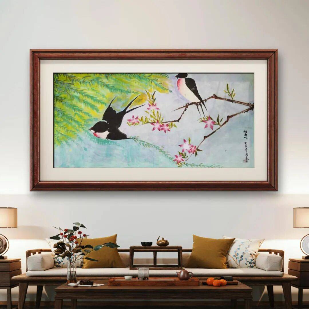 笔墨是中国书画艺术的灵魂,更是衡量一位书画家艺术造诣的核心标准。闫立敬老师的花鸟画,在笔墨运用上尽显深厚的传统功底,既传承了历代花鸟画大师的笔墨精髓,又融入了自身对艺术的独特感悟,形成了苍劲而不失灵动、厚重而兼具飘逸的笔墨语言。在勾勒线条时,闫立敬老师笔力遒劲,线条粗细变化丰富,富有节奏感与生命力。观其笔下的枝干,或挺拔如松,线条刚劲有力,墨色浓淡相宜,尽显树木的坚韧不屈;或蜿蜒似柳,线条婉转流畅,墨色温润柔和,传递出柳枝的婀娜多姿。他对线条的掌控达到了炉火纯青的境界,每一笔都精准到位,不拖泥带水,无论是花瓣的细腻勾勒,还是鸟羽的细致描绘,都能通过线条的变化展现出物体的形态与质感。