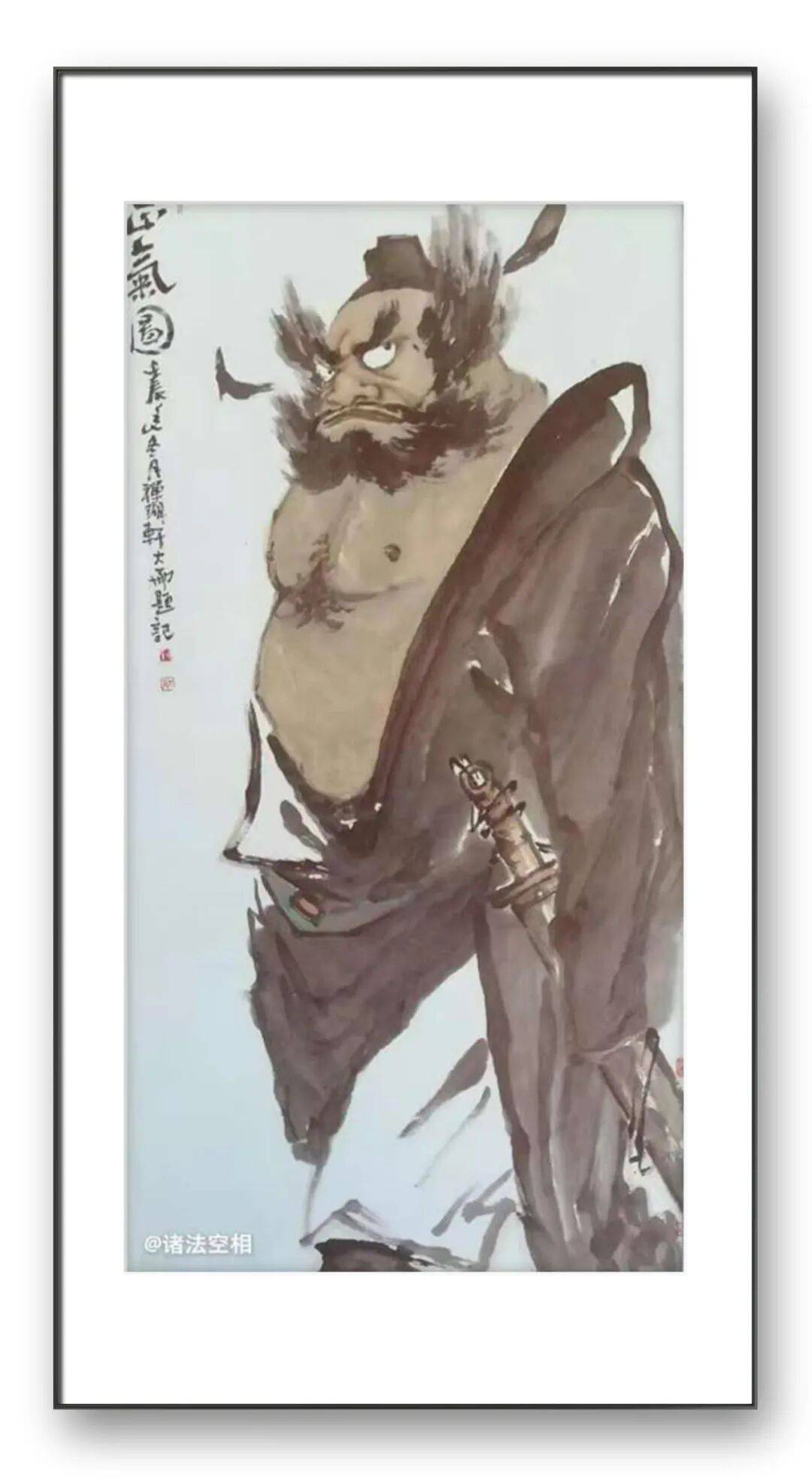 而在更深层次上,武国斌的作品是对人生的一种注解。他经历过生活的风雨,也感受过艺术的甘醇,这些人生体验都沉淀在他的笔墨之中。罗汉的沉静,是他对浮躁世事的淡然;达摩的坚守,是他对艺术理想的执着;钟馗的刚正,是他对善恶是非的坚守。他用画笔描绘人物,实则是在描绘自己的内心世界 —— 对美好事物的向往、对正义的追求、对生命本质的探索。观者在欣赏他的作品时,不仅能感受到艺术的美感,更能从中获得人生的启迪,引发对生活、对自我的思考。