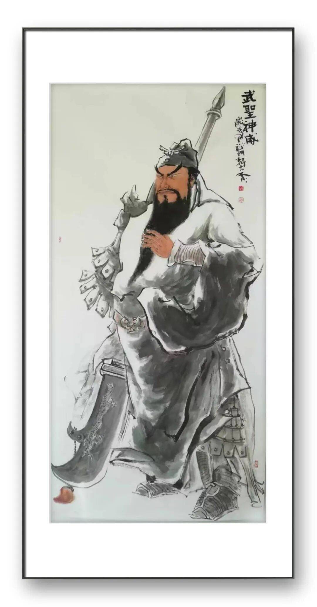 钟馗形象的塑造,则展现了武国斌对 “刚正之气” 的推崇。他笔下的钟馗,不似传统形象那般狰狞可怖,反而多了几分憨直与正气。虬劲的胡须、锐利的眼神、挺拔的身姿,在水墨的晕染下既有威慑邪恶的气场,又有体恤众生的温情。线条的粗细变化、墨色的干湿对比,让钟馗的形象立体饱满,仿佛能从画中走出,护佑人间清朗。这些人物形象之所以动人,正是因为武国斌将自己对 “善” 与 “正” 的理解、对人生的感悟,融入了每一笔、每一划,使作品超越了单纯的艺术表现,成为精神的载体。
