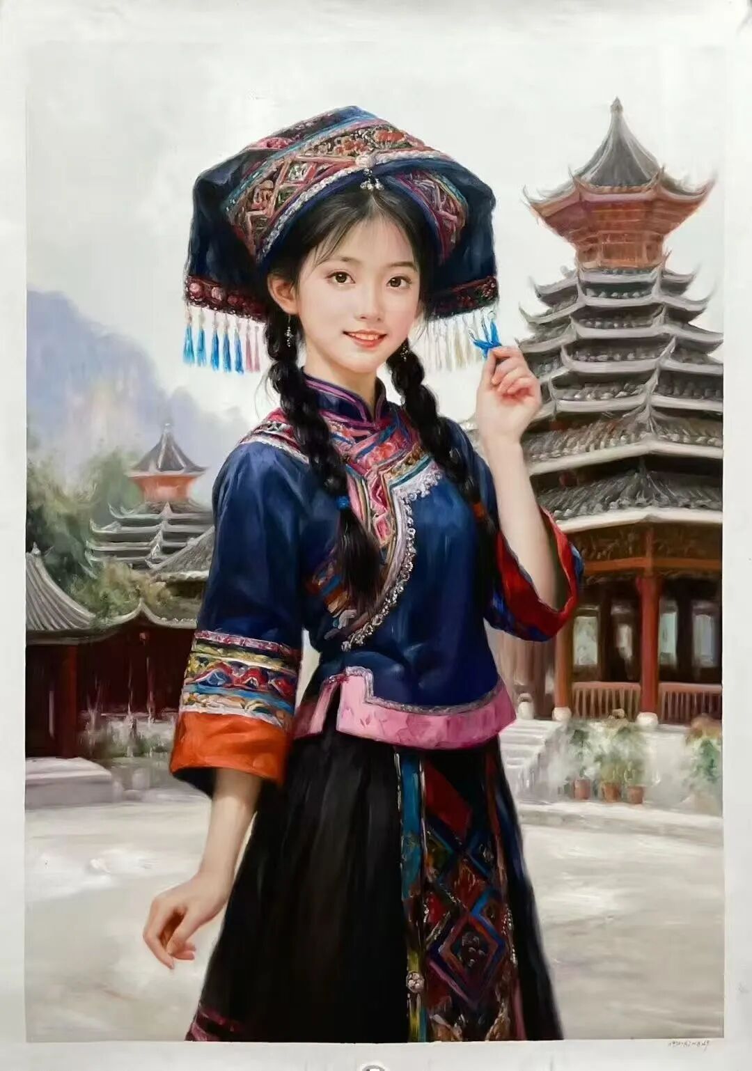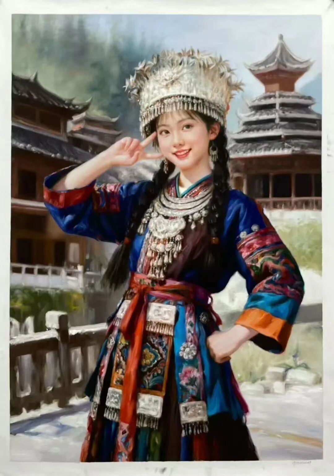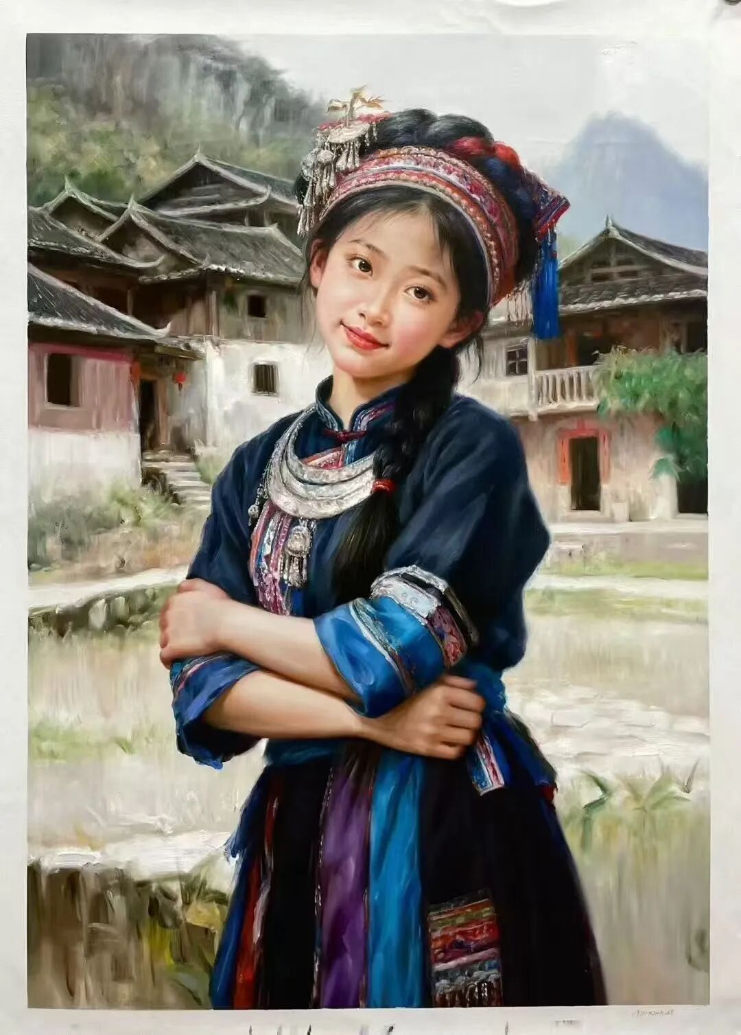 在中国当代艺术领域,周曦老师以其涉猎广泛、内涵深厚的油画人物作品独树一帜。周曦老师笔下的女性之美,首先是一种跨越题材的“大风格”的统一。无论是现代都市中凝思的知性女子,古典传说里温婉娴静的佳人,身着盛装、眼神清亮的苗族少女,还是戏曲舞台上水袖轻扬的旦角,她们都共享着一种由周曦独家赋予的“美的基因”。这种基因,体现在他对人物形态、光影和色彩无与伦比的掌控力上。