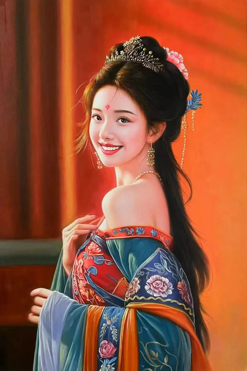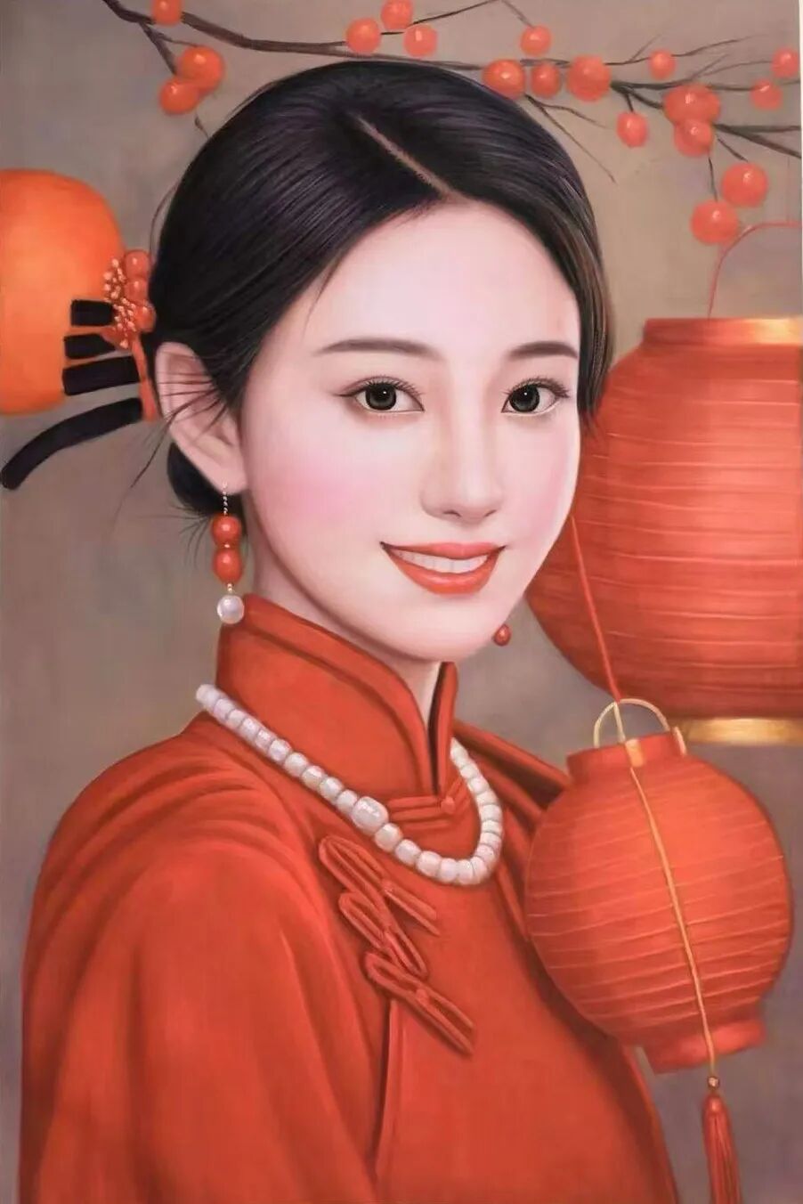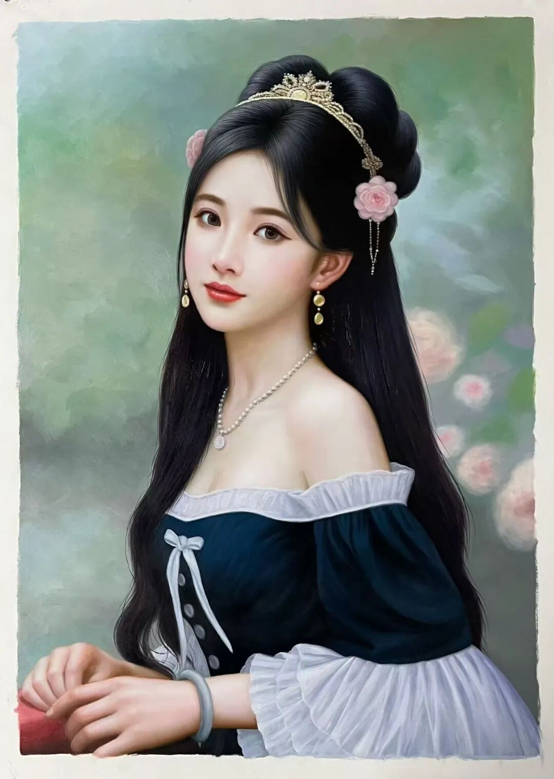 深入探究周曦老师的美学世界,我们会发现其核心是 “东方唯美精神”的当代彰显。他所追寻的,并非西方审美中常带的张力与痛感,而是东方文化所推崇的和谐、含蓄、典雅之美。他画中女子的美,往往流露于低眉敛目间的温柔,欲语还休的唇角,以及亭亭身姿中所蕴含的风骨与气韵。