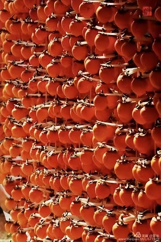 大姐的那通电话,像一只无形的手,又将那根线头拾了起来。院子里的柿子树,便这样重新回到了我的生命里。大姐是懂我的,她早就备好了烘的、懒的柿子,我一尝,那熟悉的味道瞬间便打通了多年的隔阂,童年的一切仿佛都回来了。更让我惊喜的是,大姐还用着母亲那般的老法子,将削了皮的柿子用线绳系着蒂巴,一串串地挂在屋檐下,像一道道橙红色的珠帘,在秋风里微微地荡着。她说,这是要晾成“柿枣”,等到春节时吃,比外面买的柿饼更筋道,更有嚼劲儿。我看着那一串串柿子,像看着一串串被小心保存起来的光阴。