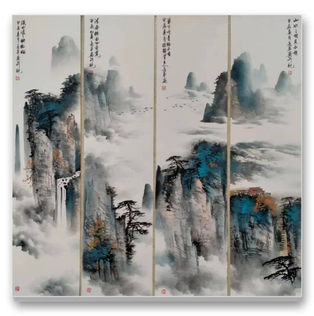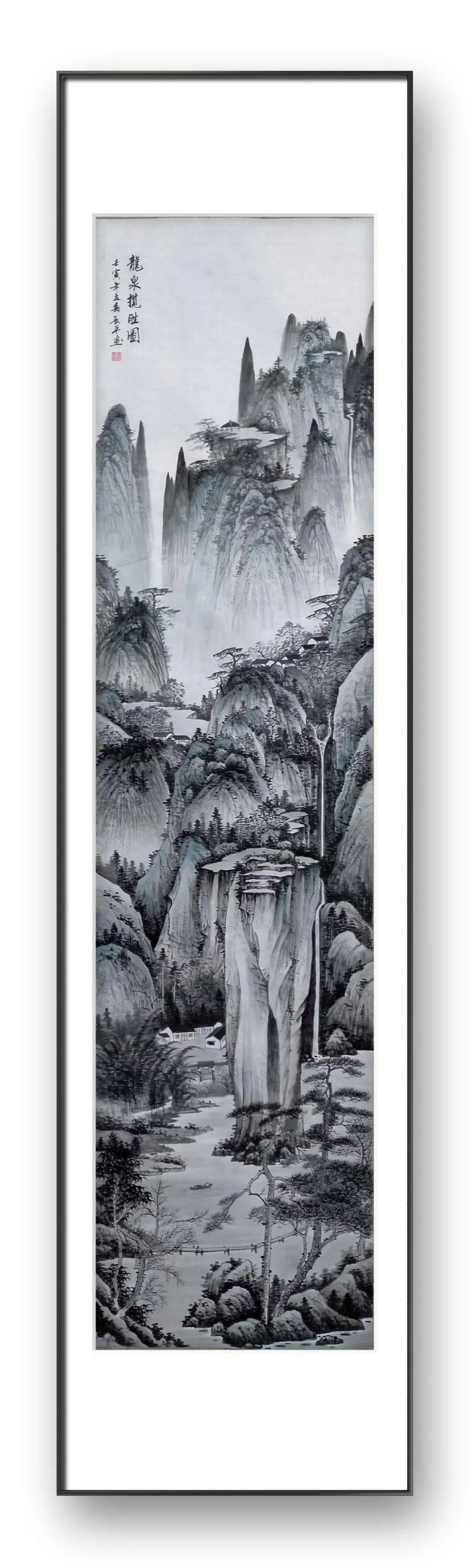 在笔墨技法上,王长平先生的山水作品兼具苍劲与灵动之美。先生的用笔遒劲有力,线条粗细变化丰富,既有北派山水的雄健刚硬,如《太行雄姿》中,山石的勾勒以中锋为主,线条挺拔利落,尽显太行山脉的巍峨壮阔;又有南派山水的秀雅灵动,如《江南烟雨》中,林木的描绘以侧锋辅之,线条飘逸流畅,勾勒出江南水乡的朦胧意境。在墨法运用上,他深谙 “墨分五色” 的真谛,焦、浓、重、淡、清的墨色层次分明,干湿交替自然,通过积墨、破墨、泼墨等技法的灵活运用,使画面产生丰富的肌理效果。如《黄山云海》中,云海的表现以淡墨为主,辅以浓墨点染,墨色的晕染自然流畅,将云海的缥缈变幻表现得淋漓尽致,山石则以积墨技法层层叠加,尽显黄山的厚重沉稳。