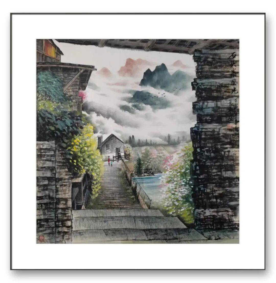 在意境表达上,王长平先生的山水作品饱含人文情怀。他的作品不仅仅是对自然山水的简单描摹,更是对自然之美与人文精神的深度融合。他善于将个人的情感与感悟融入画面,使山水作品具有强烈的情感共鸣。如《故乡情》中,画面以江南水乡为背景,小桥流水、茅屋疏林,笔墨间充满了对故乡的眷恋之情,平淡质朴的场景中蕴含着深厚的人文关怀。而《山河颂》等作品,则以雄浑壮阔的山水景观为题材,笔墨苍劲,气势磅礴,展现出对祖国大好河山的赞美与热爱,传递出积极向上的时代精神。王长平的山水作品,无论是雄奇壮阔的北方山水,还是清新秀雅的南方水乡,都能以精准的笔墨技法与深邃的意境表达,打动观者的心灵。他用笔墨勾勒山水之形,用情感赋予山水之魂,使作品既具有很高的艺术价值,又具有深厚的文化内涵。