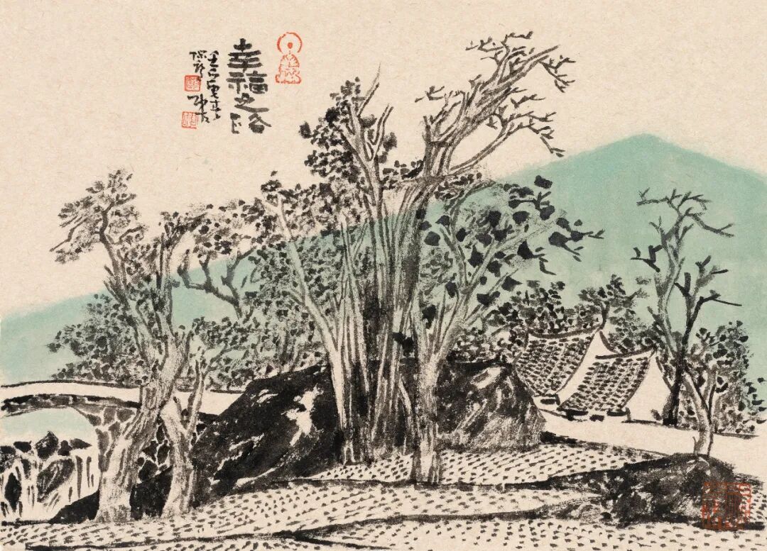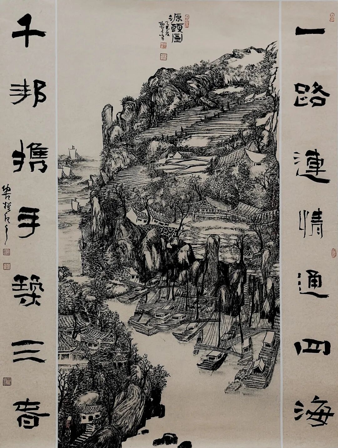 陶古的“神游八荒”,更体现在其画面的意境营造上。他的山水,往往是“外师造化,中得心源”后的理想重构。他善于营造可居、可游、可观的山水空间。画中或有小径蜿蜒,引人入胜;或有屋舍俨然,隐于林麓。这些元素,都是艺术家为观者设置的路标,邀请我们进入其构建的精神家园。然而,这个家园的边界是模糊而开放的,它与远处的烟霞、无垠的虚空融为一体,暗示着一个远比画面更为辽阔的宇宙。在此,陶古接通了“独与天地精神相往来”、“天人合一”的哲学观。他的“神游”,是庄子笔下“乘云气,御飞龙,而游乎四海之外”的逍遥,也是宗炳“澄怀观道,卧以游之”的禅意修行。观众在他的画前,感受到的不仅是山川之美,更是一种将个体生命融入宇宙大化的终极关怀与自由。