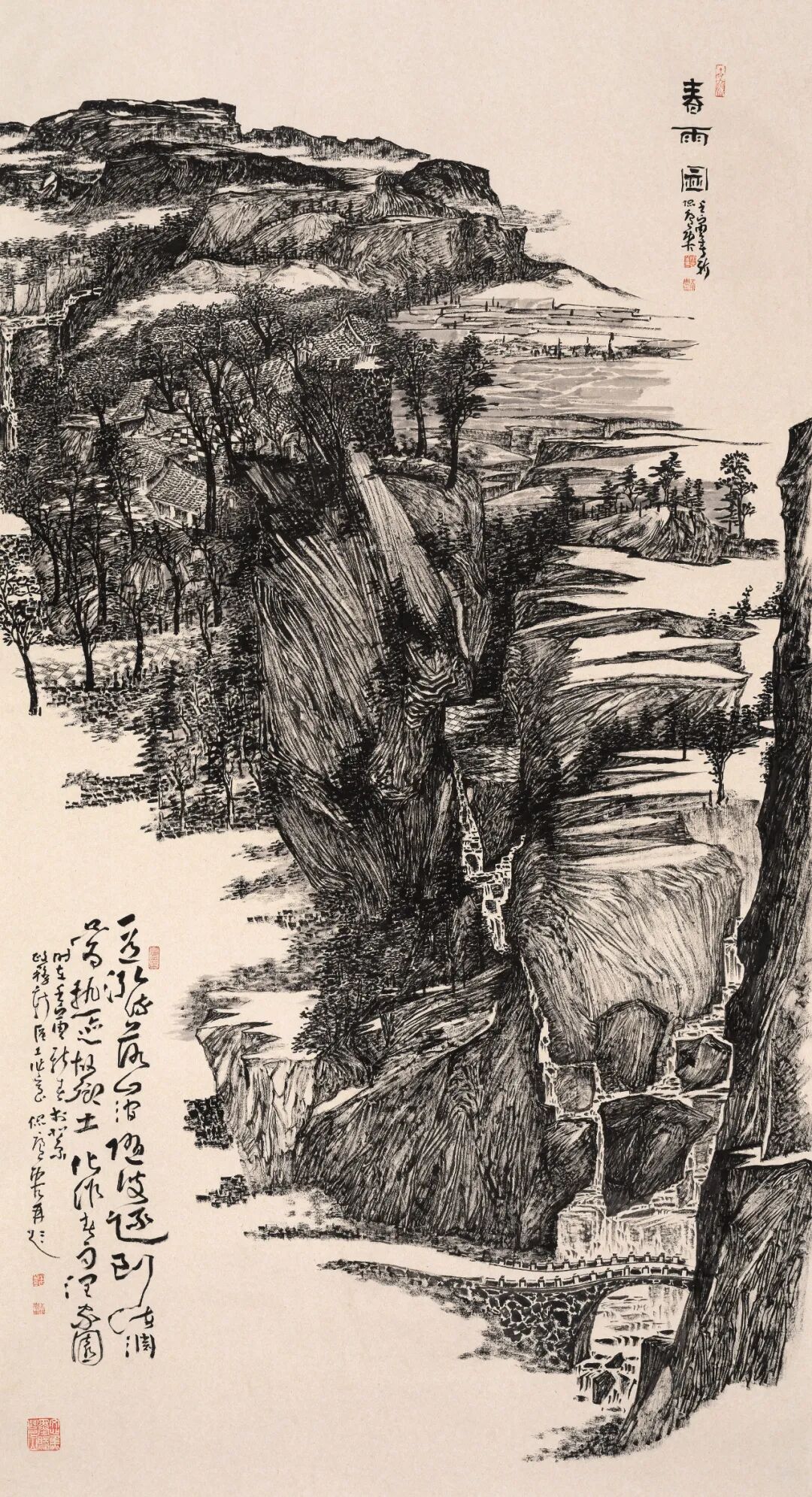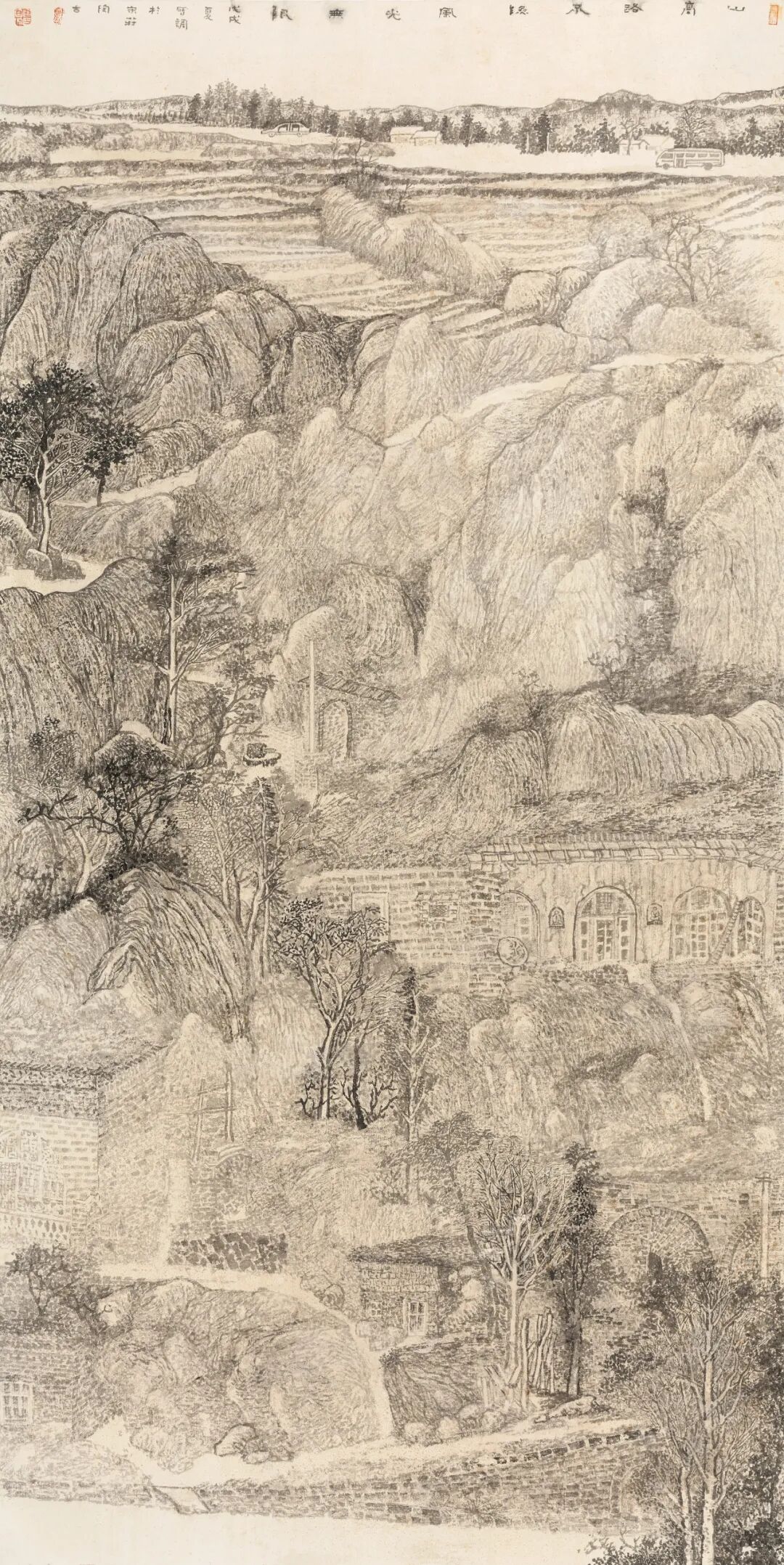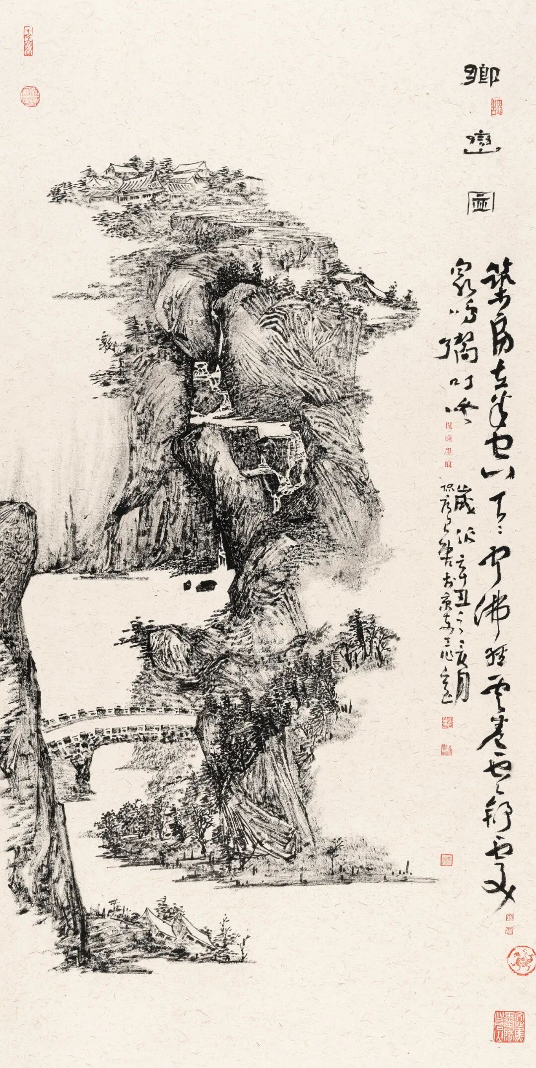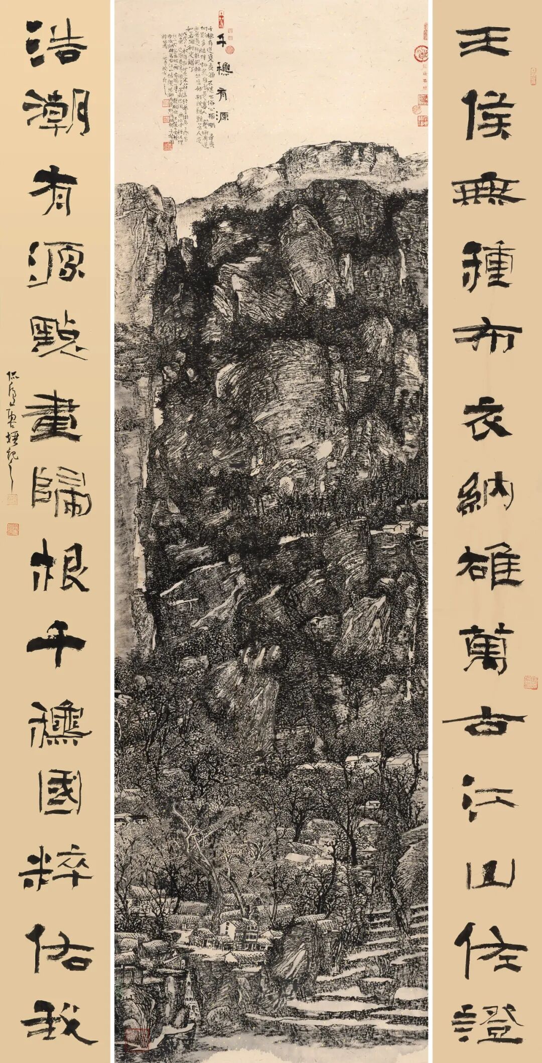 陶古的守成规,是对中国山水画千年法统的深刻理解与创造性继承。他的笔墨中,流淌着北宋山水的雄强气势与造境能力。我们可以从其巨嶂式构图中,感受到范宽《溪山行旅图》那般顶天立地的庄严;从其山石皴法中,辨识出从五代荆浩、关仝一路而来的骨力,又融入了元代王蒙的繁密与蓬松。然而,他的“守”,并非泥古不化地复制图式,而是对古典法度的内在逻辑进行萃取。他深知,古人之法,源于对真山真水的观察、提炼与升华。因此,他所守者,是骨法用笔中蕴含的书写性,是气韵生动所要求的生命感,是各种皴法、点法、树法背后所对应的自然物理与笔墨情趣。他的“成规”,是经过其个人心性消化、重组后鲜活的画法。