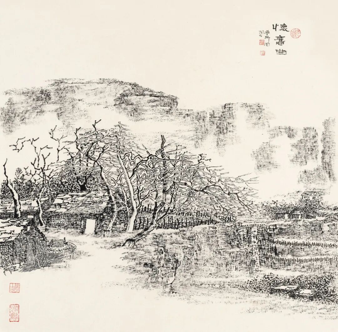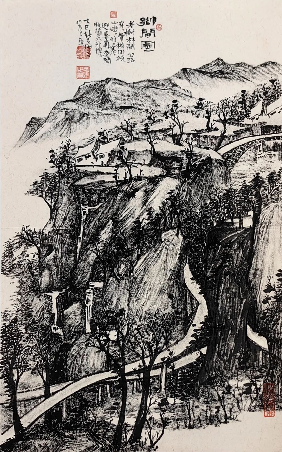焦墨,乃墨之极境。它摒弃了水墨氤氲、五彩绚烂的便捷,将绘画语言高度提纯至黑白两极。这无疑是一种“戴着镣铐的舞蹈”。在水墨世界中,一片烟霞、一抹远山或许可借水气的晕染偶得;而在焦墨的世界里,每一根线条,每一处皴擦,每一块墨色,都必须经由艺术家全然的理性控制与情感灌注,从笔底生出。陶古先生选择焦墨,正是“选择了一条最难走的道路”(王仲语)。在他的画作中,我们看不到丝毫的取巧与含糊。山石的体量、树木的枝干、云水的流走,皆依靠笔锋的顿挫转折、用笔疏密来塑造。这种纯粹性,迫使观者剥离了对浮华表象的依赖,直抵物象的筋骨与本质,从而接近了中国哲学中“抱朴守一”、“素以为绚”的至高境界。