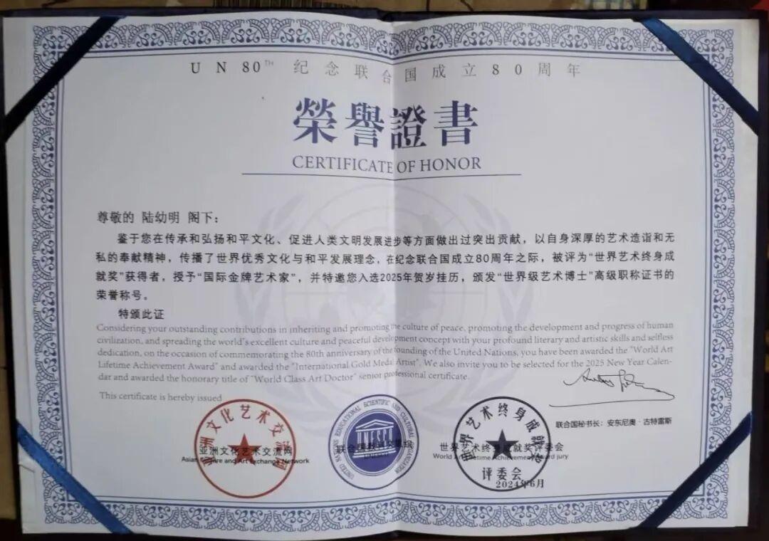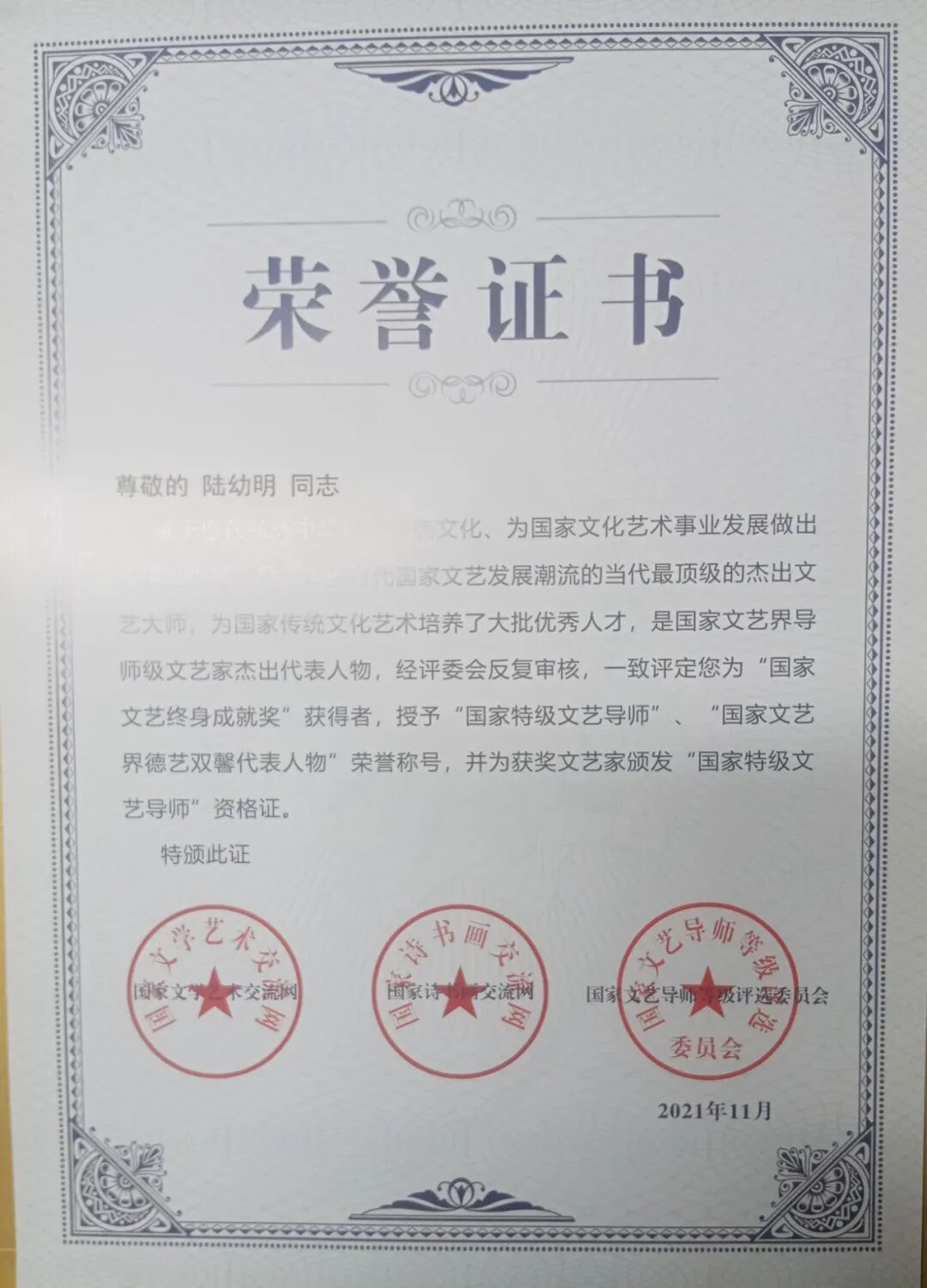 现为北京华夏艺书画院院士,河南名家书画艺术研究客座教授,一级书法师,世界华人艺术家联合会会员,上海书协浦东辅导总考级指导教师,北大书画艺术研究院客座教授,上海静安区书协副秘书长,国际名家书画院副院长(教授),非物质文化遗产传承人物,中国诗词家协会名誉会长,其书法作品曾数百次被邀参国内外大赛,数百次获各等级奖项,曾在中国书画家优秀作品赴欧洲八国展览拍卖活动中获金奖,并编入《中国书画赴欧洲八国展精品集》一书,并被授予“中国知名书画家”荣誉称号,入编大型画册《2008 北京奥运会书画拍卖作品专辑》,并授予“中国杰出奥运艺术家”荣誉称号。