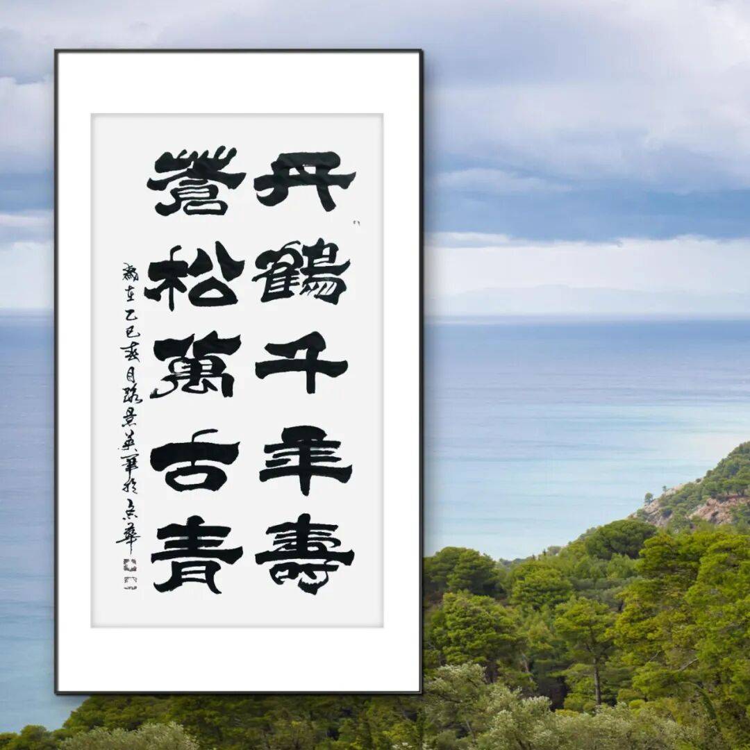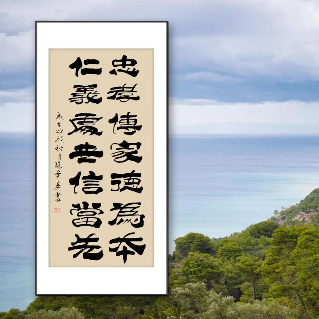 艺术的生命力在于继承后的创新,路景英老师在深耕颜体之后,将目光投向了隶书这一兼具古朴与灵动的书体,选择刘炳森、卢定山两位隶书大家的碑帖作为专攻方向,开启了其书法风格的重要转型。刘炳森的隶书以规范端庄、雅俗共赏见长,其字体结构严谨,笔法精湛,将隶书的古朴韵味与现代审美完美结合;卢定山的隶书则更具个性色彩,笔画灵动多变,结字富于变化,在传统基础上融入了更多写意元素。路老师取两家之长,在深入临摹中探寻隶书的艺术精髓,最终形成了“字体奇险、笔锋独特,苍劲有力”的鲜明风格。