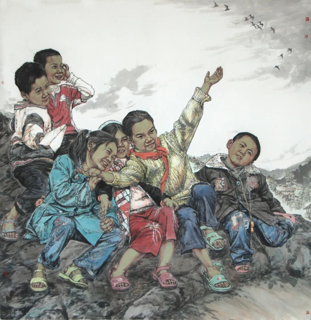 《腰鼓队员》2017年入选香港回归二十周年全国中国画作品展被组委会收藏