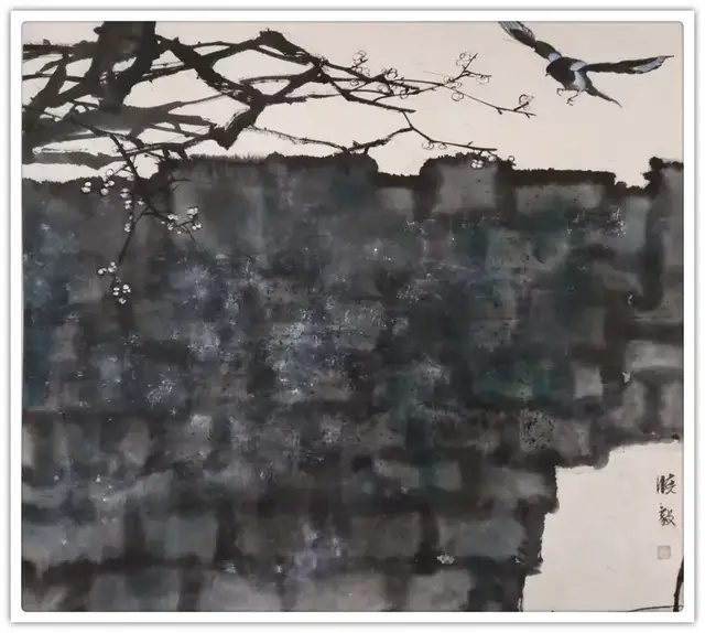 在语言层面,吴晓毅先生实现了 “书写性”与“绘画性”的深度融合。他的笔线,从书法中蜕化而来,却不再仅仅服务于物象的轮廓勾勒,而是升华为具有独立审美价值的抽象符号,在画面中舞蹈、盘旋、冲突,充满了运动的节奏与生命的情感。同时,他对水与墨的控制已臻化境,充分利用其不可控性所带来的偶然效果,让水痕墨渍本身“说话”,从而生发出超越具象的丰富意蕴。这种对媒介物质特性的极致发挥,使其作品超越了叙事,直抵“大象无形”的哲学境界。