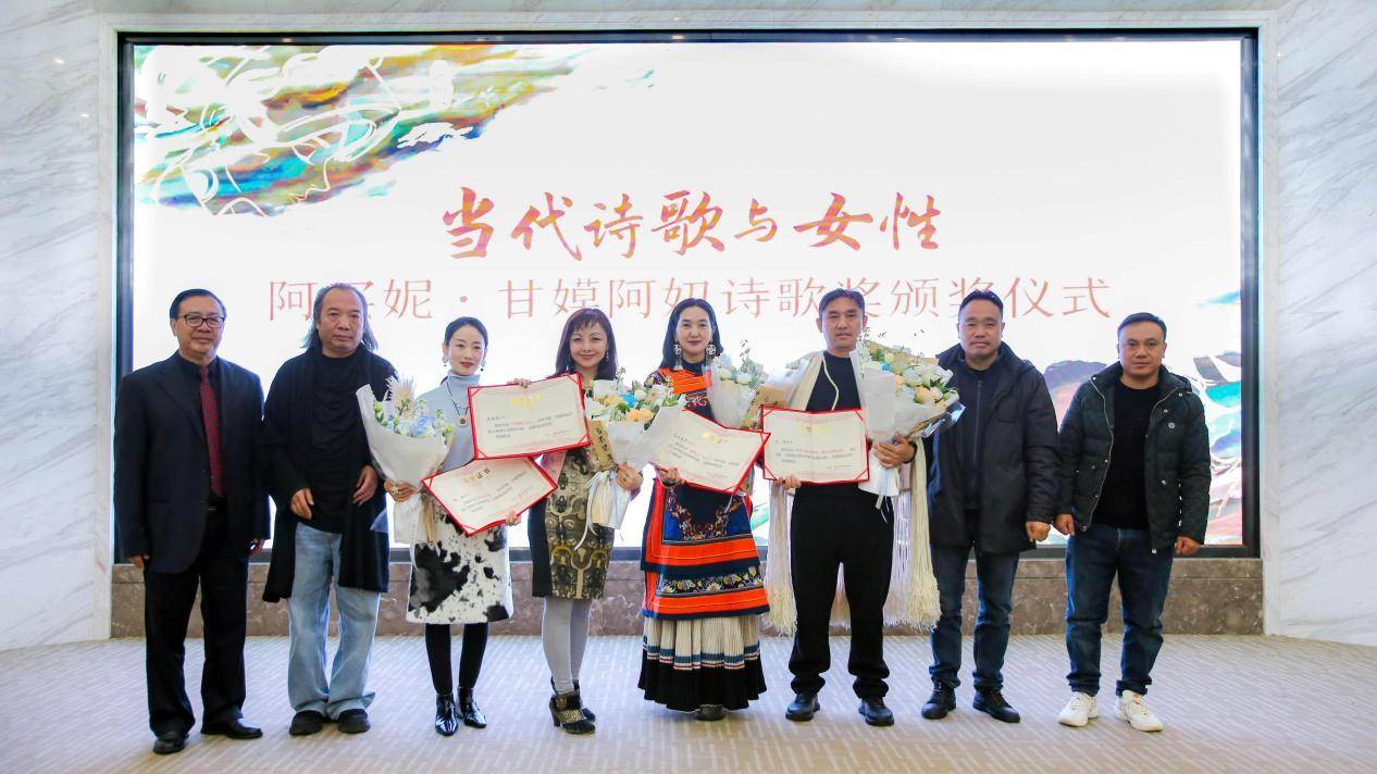 “阿买妮·甘嫫阿妞诗歌奖”获得者与颁奖嘉宾合影纪念