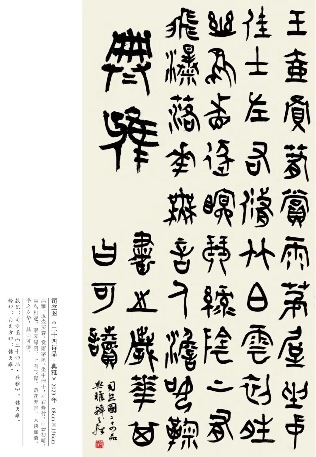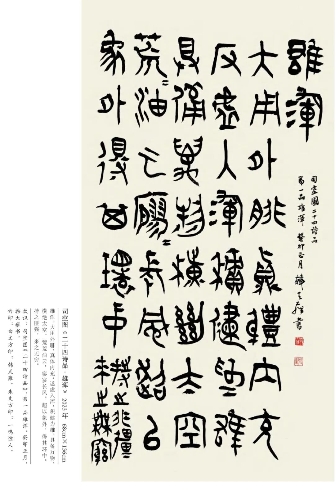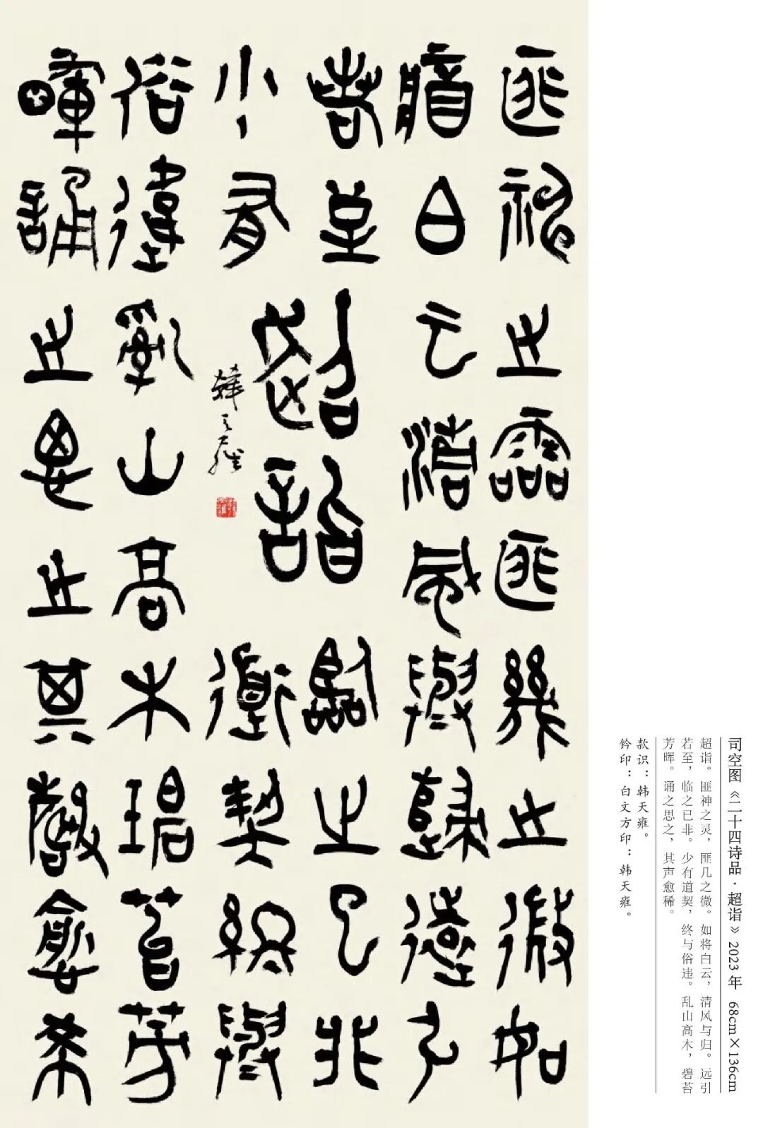 韩天雍 辽宁沈阳人,中国美术学院中国画与书法艺术学院教授、博士生导师。1984年获辽宁大学外国语言文学学士,1992年获浙江美术学院国画系文学硕士,师从沙孟海、刘江教授,2001年获首都师范大学中国书法研究院文学博士学位,师从欧阳中石教授。现为中国美术学院古文字书法创作研究中心主任、浙江省甲骨文学会会长、浙江省文史馆馆员丶教育部学位与研究生教育发展中心硕博学位论文通讯评审专家、上海美术学院特聘教授、博士研究生导师。日本岐阜女子大学特聘教授、中国书法家协会会员、西泠印社社员。1998年以来,应日本文部省邀请,赴日本岐阜女子大学及多所大学讲学十二年。著有《日本篆刻艺术》、《佛教写经》、《三笔三迹》、《中日禅宗墨迹研究》、《日本书道史》、《中国历代名家篆刻边款释文集成》《吴昌硕篆刻》、《韩天雍大篆》系列法帖十种。其中《中日禅宗墨迹研究》论著获国家“十一五”社会科学艺术基金奖,《中国历代名家篆刻边款释文集成》获“世纪好书”奖。