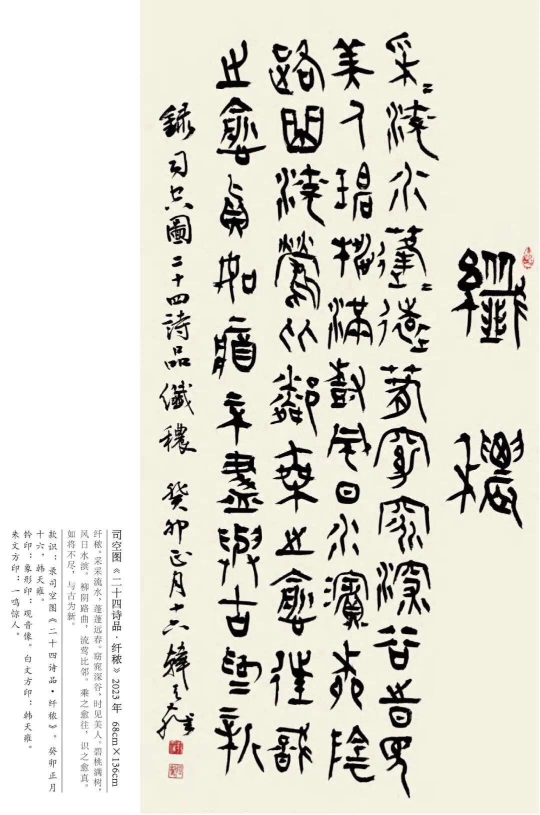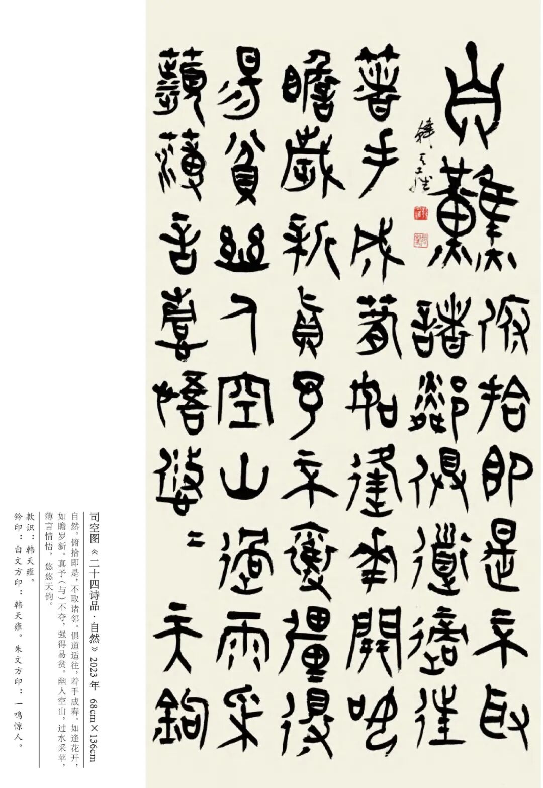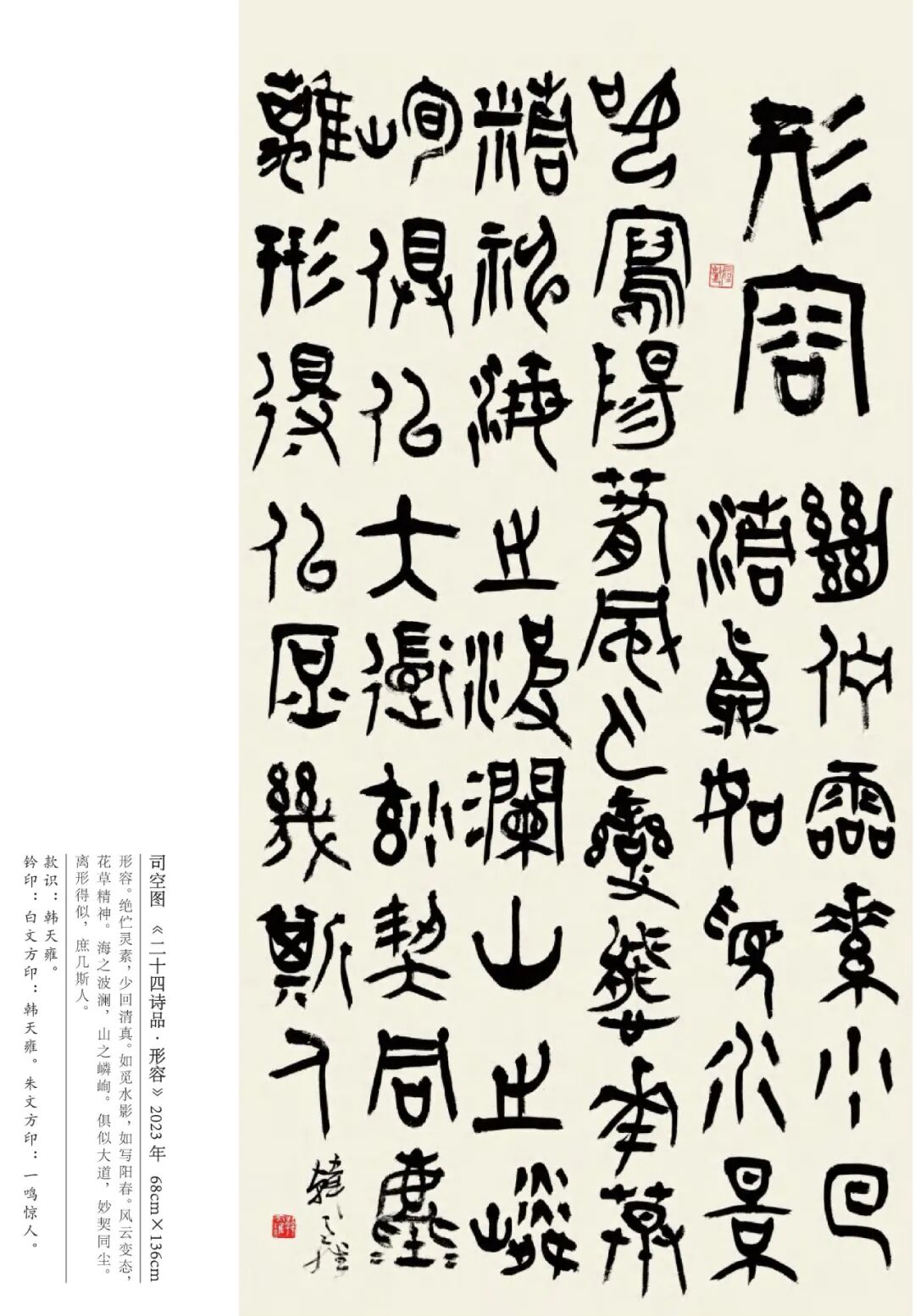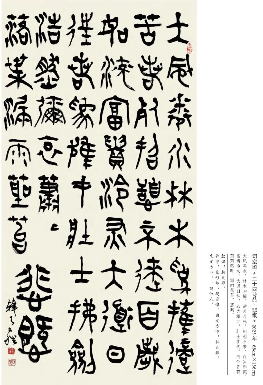 韩天雍 辽宁沈阳人,中国美术学院中国画与书法艺术学院教授、博士生导师。1984年获辽宁大学外国语言文学学士,1992年获浙江美术学院国画系文学硕士,师从沙孟海、刘江教授,2001年获首都师范大学中国书法研究院文学博士学位,师从欧阳中石教授。现为中国美术学院古文字书法创作研究中心主任、浙江省甲骨文学会会长、浙江省文史馆馆员丶教育部学位与研究生教育发展中心硕博学位论文通讯评审专家、上海美术学院特聘教授、博士研究生导师。日本岐阜女子大学特聘教授、中国书法家协会会员、西泠印社社员。1998年以来,应日本文部省邀请,赴日本岐阜女子大学及多所大学讲学十二年。著有《日本篆刻艺术》、《佛教写经》、《三笔三迹》、《中日禅宗墨迹研究》、《日本书道史》、《中国历代名家篆刻边款释文集成》《吴昌硕篆刻》、《韩天雍大篆》系列法帖十种。其中《中日禅宗墨迹研究》论著获国家“十一五”社会科学艺术基金奖,《中国历代名家篆刻边款释文集成》获“世纪好书”奖。