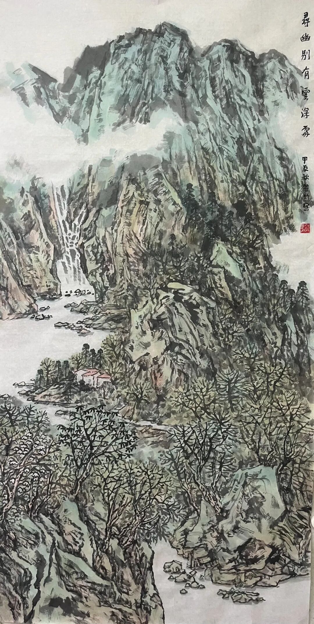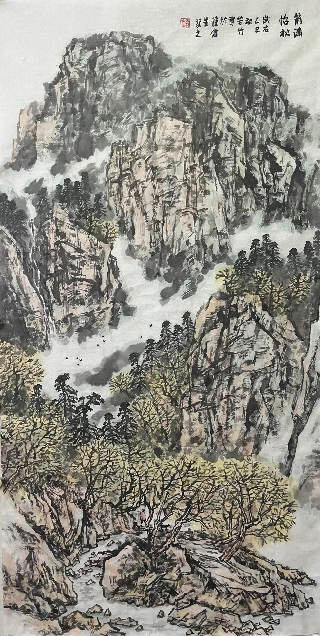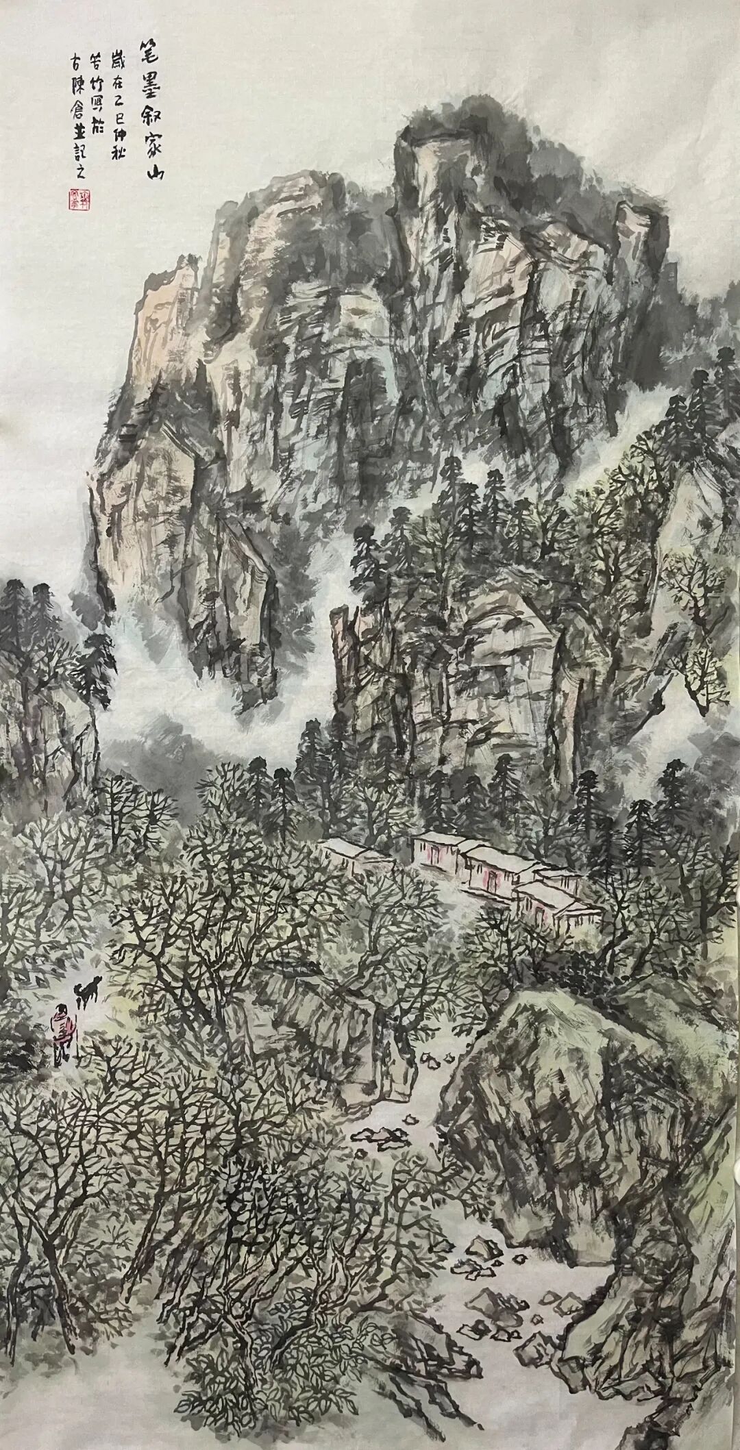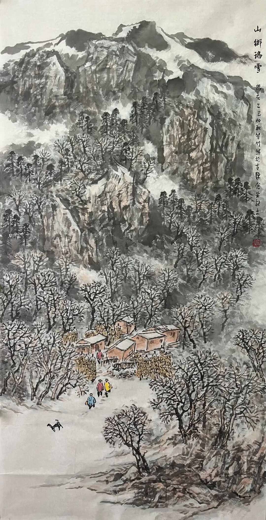 众所周知,明代吴门画派的沈周,作品有“细沈”与“粗沈”之分,而秦家华的祖籍也是江苏。祖上江南,却在西北生活的特殊经历,使得秦家华的作品以烟水润苍茫,他的作品也因之可以仿照美术史家对于沈周作品风格的划分而分为粗、细两种风格,但细笔为主。就个人偏爱言,我更喜欢他的细笔山水,比如《故乡雪晴》《山泉流韵》《故园吉祥》《寒林踏雪》《云峰呈祥瑞》等。而相对“粗笔”类的作品,比如组画《关陇记忆·岁月如歌》《秋壑云起》等作品,虽有粗笔之形,但内在精气神还是秀美多于壮美。