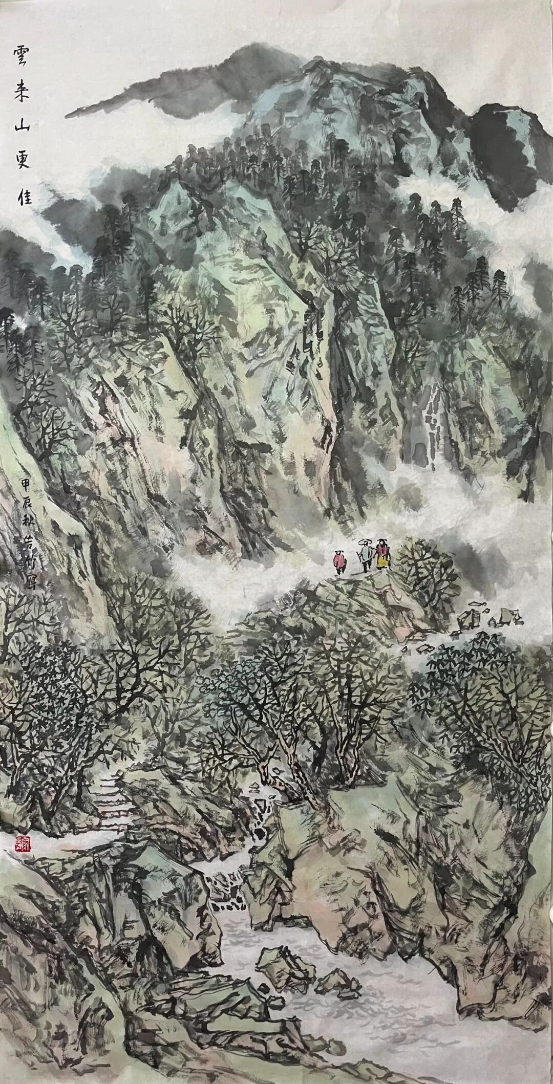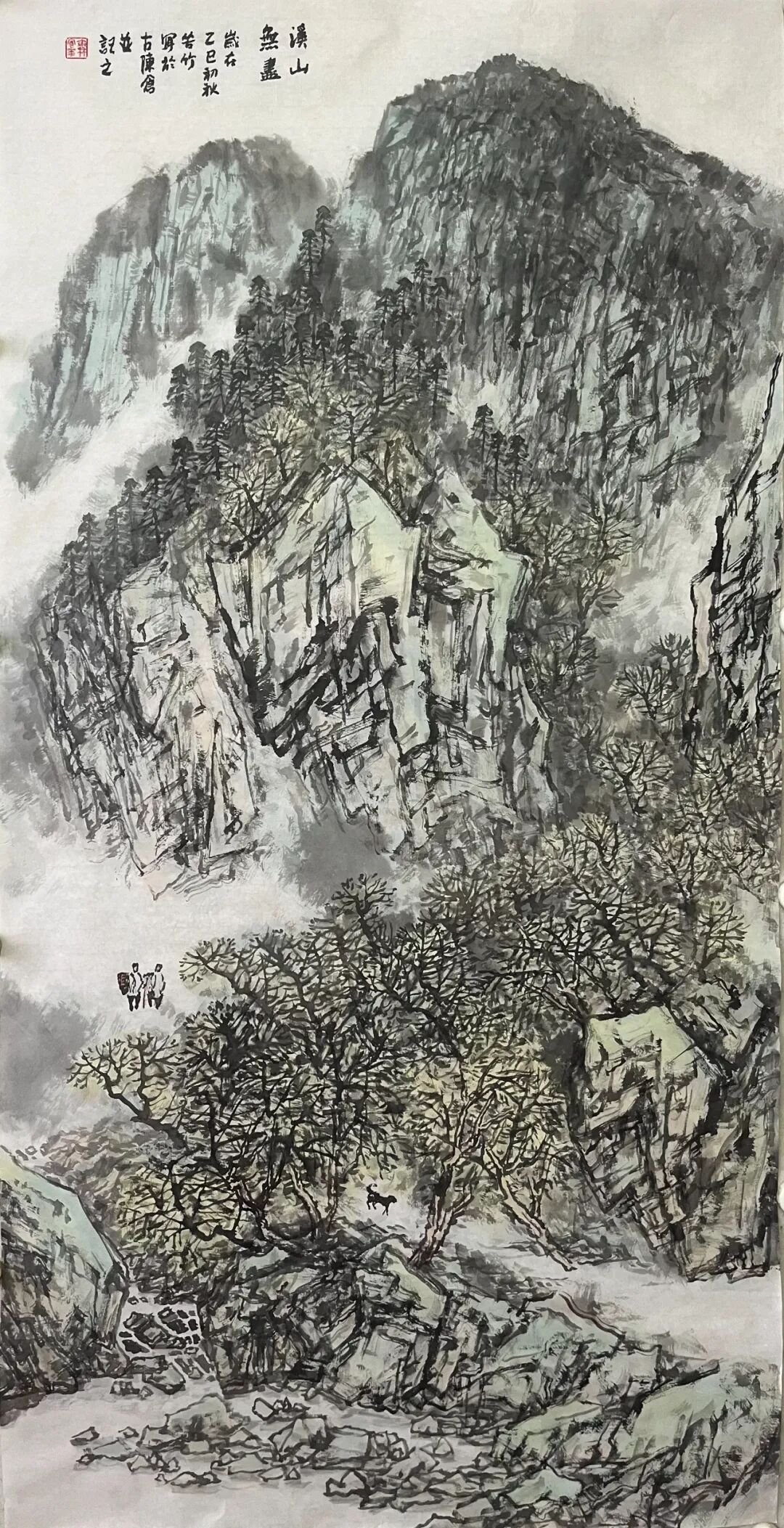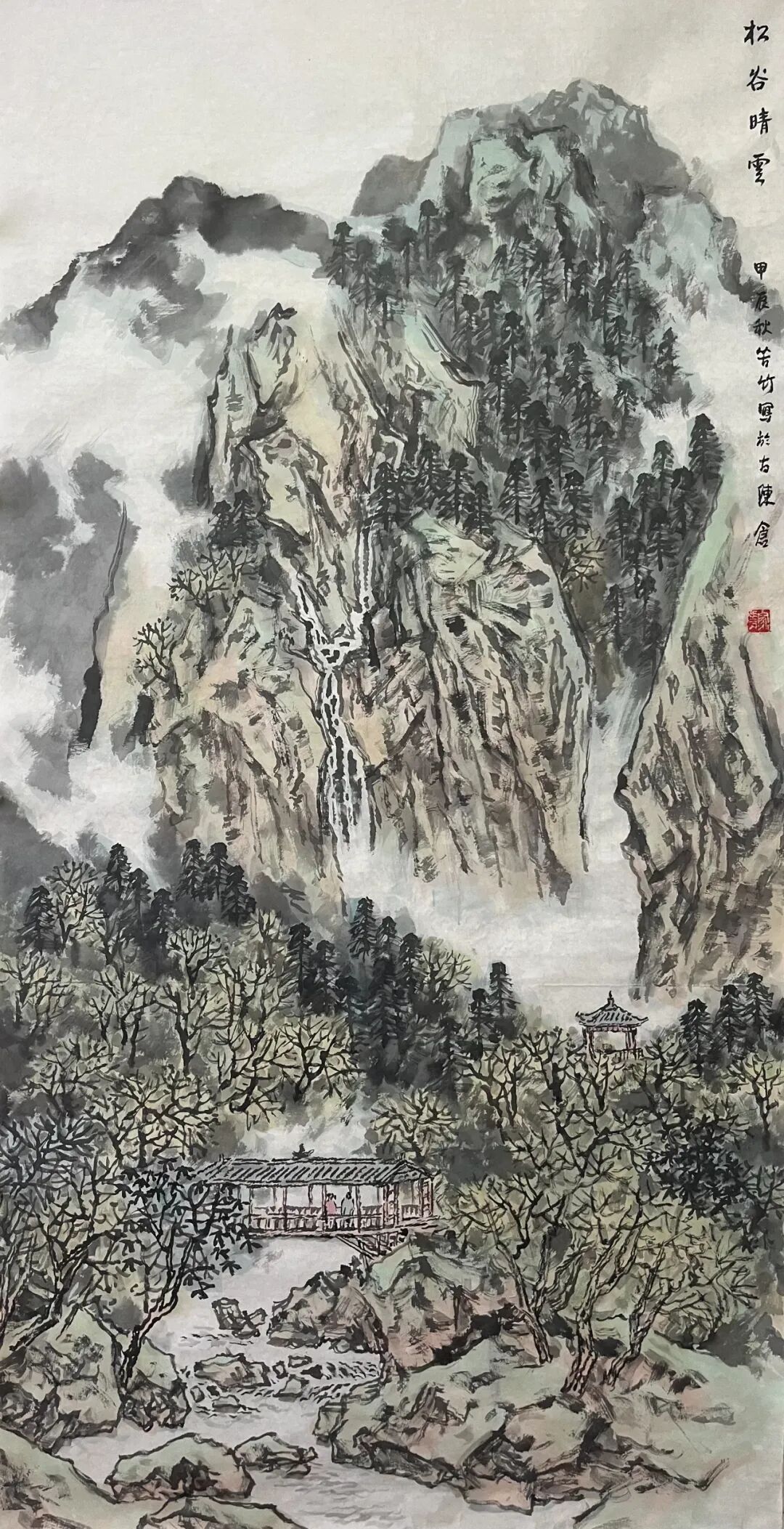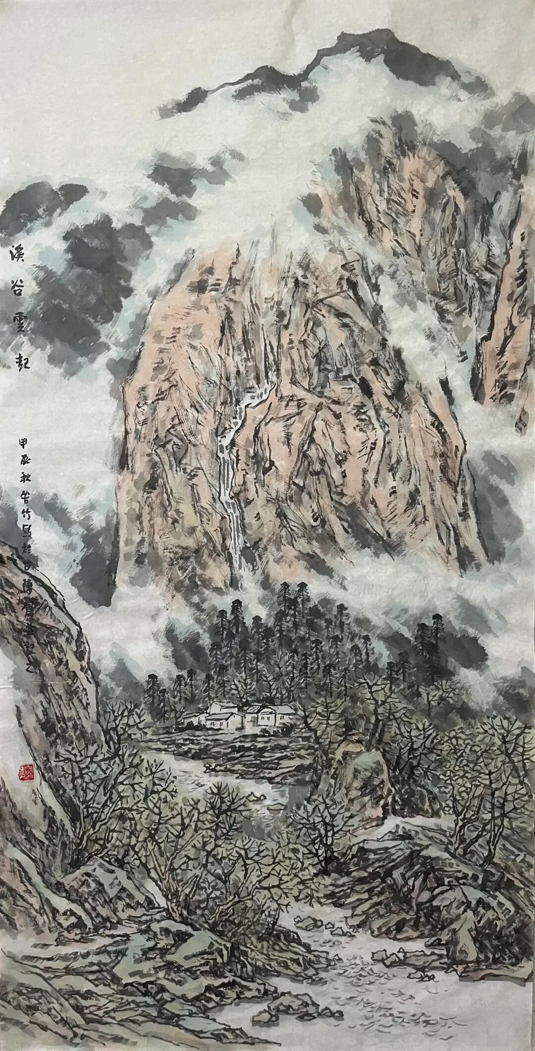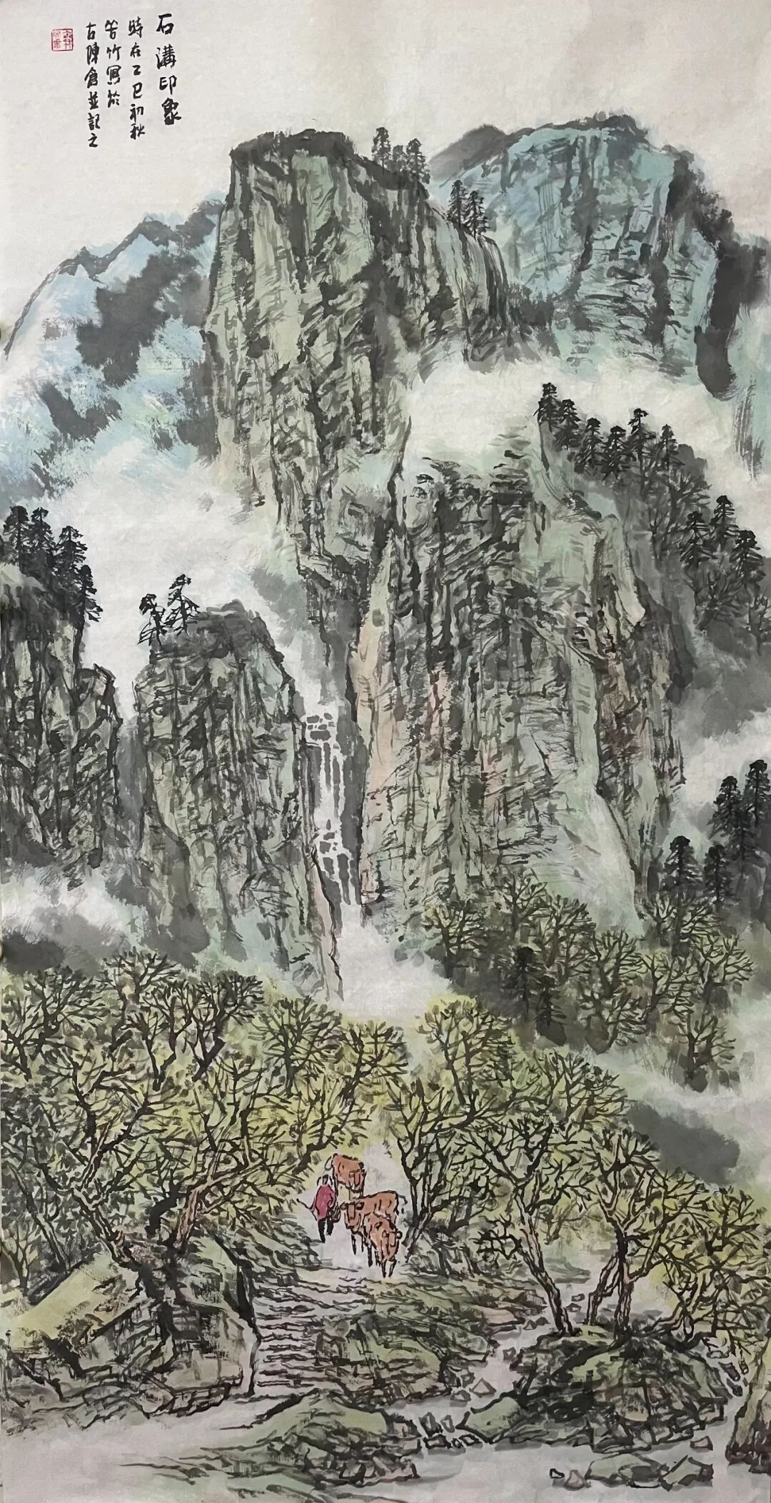 众所周知,明代吴门画派的沈周,作品有“细沈”与“粗沈”之分,而秦家华的祖籍也是江苏。祖上江南,却在西北生活的特殊经历,使得秦家华的作品以烟水润苍茫,他的作品也因之可以仿照美术史家对于沈周作品风格的划分而分为粗、细两种风格,但细笔为主。就个人偏爱言,我更喜欢他的细笔山水,比如《故乡雪晴》《山泉流韵》《故园吉祥》《寒林踏雪》《云峰呈祥瑞》等。而相对“粗笔”类的作品,比如组画《关陇记忆·岁月如歌》《秋壑云起》等作品,虽有粗笔之形,但内在精气神还是秀美多于壮美。