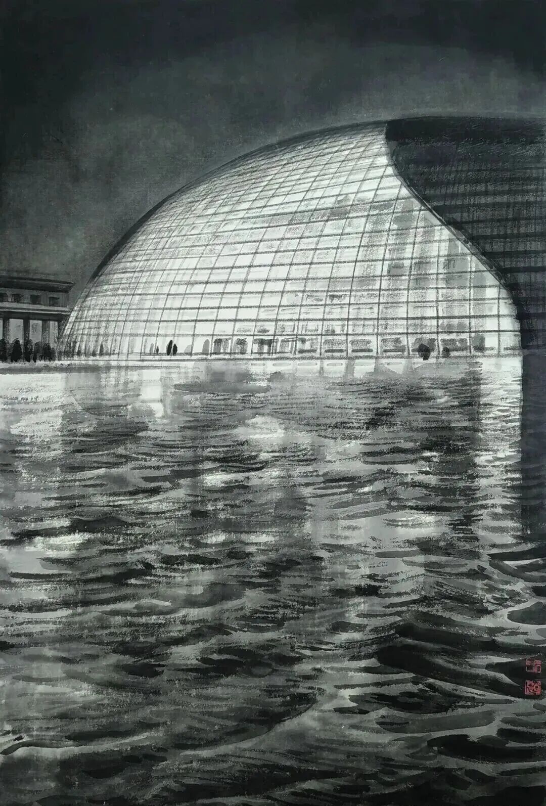 冯远《圣都纪景之六》纸本水墨 68cm×45cm 2025年