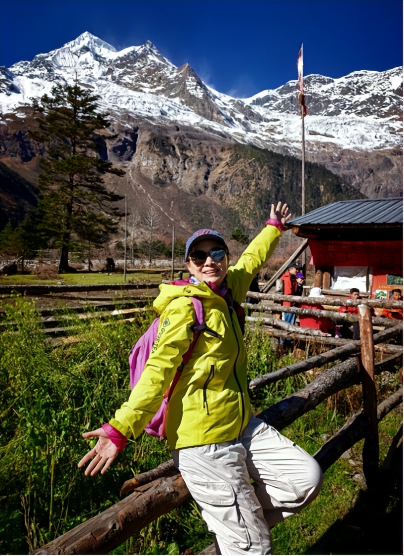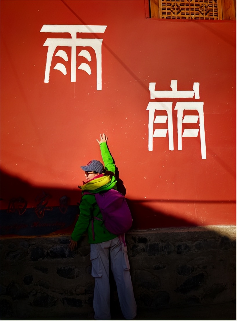 餐厅里吃一碗辣香的米线,唇齿留香。兴奋与期待中,背起简单的行囊,大踏步向徒步起点奔去。转角处,一面写有“雨崩”的红墙,令人忍不住打卡留念,那鲜艳的红色,仿佛在讲述着这片土地的神奇。倚着石砌的半墙,与雪山同框;站在梯子上,与帐篷旁的驴友招手致意。是想听人家的故事,还是要问问数星星的浪漫?这一刻,人与自然仿佛融为一体,美丽的风景中,有你有我还有他。