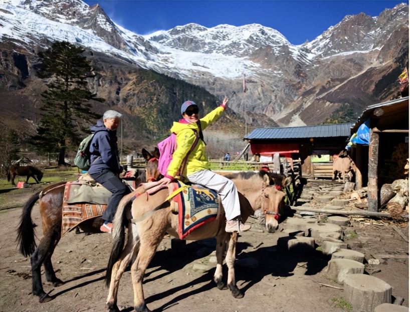 扎西兄弟指着不远处简陋的房舍说:前面就是“笑农牧场”了,我就送各位到此,剩下去冰湖的路就靠各位的双腿了。看完冰湖返回还在此骑骡子下山,不过这位大哥不行。哎呀呀,这不是严重歧视胖人吗!但任凭你怎么说,扎西兄弟就是不同意。来到“笑农牧场”,脚一沾地,就立马让俺扫码付款。原以为会收双倍的价钱,可能考虑到俺只骑了一个单程,仅收了610元;随即一言不发,拴好自己心爱的骡子,讪讪走进了路边的休息点。